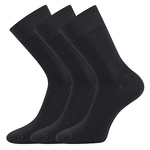 Klasické hladké ponožky ELI jsou luxusní ponožky z kolekce Lonka®. Přírodní materiál bavlna vyniká vysokou savostí vlhkosti a je velmi příjemná na omak. Ponožky jsou upletené na 200 jehlách, jsou proto velmi příjemné, ponožky mají jemně sešitou špici, spoj je tedy hladký a nehrozí Vám otlaky nebo puchýře. Lem ponožky má velmi jemný, nikde nestahuje a nezařezává se do pokožky. Klasické ponožky v extra kvalitě můžete bez obav nosit k pánskému obleku nebo při každé celodenní činnosti.