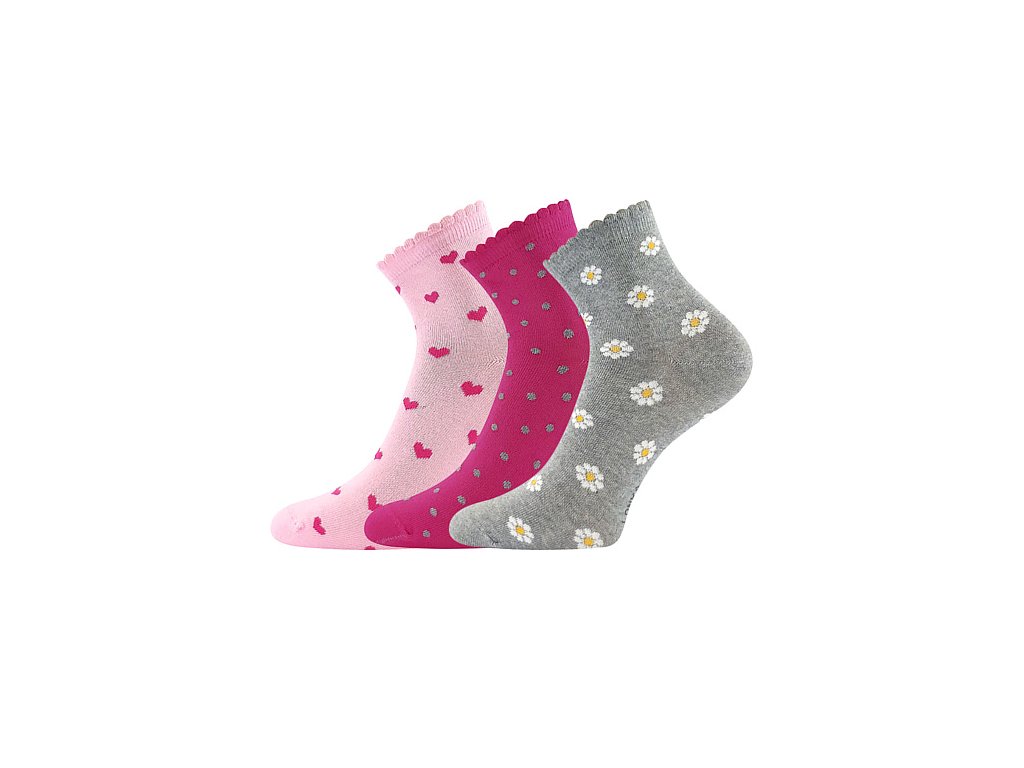 Dětské slabé ponožky Lonka® EMA jsou holčičí ponožky s jemnými motivy. Potěšte vaše malé i větší slečny a pořiďte jim tyto elegantní ponožky. Ponožky jsou v kratší výšce ke kotníku a mají ozdobný lem. Vzorované dětské ponožky mají navíc špičku spojenou plochým řetízkovým švem, který nikde netlačí. Vhodné na celodenní nošení. Veselé ponožky prodáváme v mixu.