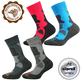 Dětské zimní ponožky VoXX® ETREXÍK jsou ideální thermo ponožky do chladných nebo mrazivých dnů. Dětské ponožky najdou své využití hlavně při sportu i volném čase. Teplé ponožky VoXX mají polstrované zóny chránící před nepříjemnými otlaky a puchýři nejen při zimních činnostech. Anatomické tvarování, jemný svěr lemu a vysoká prodyšnost jsou tou nejlepší volbou pro nohy vašich dětí. Ponožky VoXX teplotní třídy C jsou vhodné do teplot v rozmezí od -20°C až +5°C, jistě tak oceníte tepelný komfort materiálu merino vlna CLIMAYARN společně s antibakteriální ochranou materiálu silproX® s ionty stříbra.