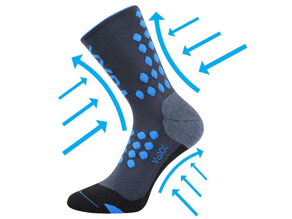 Dámské a pánské kompresní sportovní ponožky VoXX® FINISH s vyvzorovanou patou a jedinečnými puntíkovanými polstrovanými zónami proti otlakům. Kompresní ponožky mají řetízkovanou špici a speciální konstrukci zamezující přetáčení v botě. Anatomicky tvarované polstrované zóny brání vzniku otlaků a puchýřů. Díky kompresi napomáhají pevnějšímu držení a vyšší stabilitě kotníku, zapletením materiálu silproX® s ionty stříbra zajišťuje antibakteriální ochranu a jemné polstrování materiálem DRYTEX zajistí maximální komfort a odvod potu při vysoké sportovní zátěži. Kompresní ponožky jsou v teplotní třídě A, vhodné do rozmezí teplot od +10°C do +35°C.*KOMPRESNÍ TŘÍDA 1 (tato kompresivní třída výrobků slouží preventivně, především jsou vhodné pro pacienty s pocitem těžkých nohou a počáteční žilní nedostatečnosti, která se projevuje pocitem únavy, tíhy a napětím v dolních končetinách).