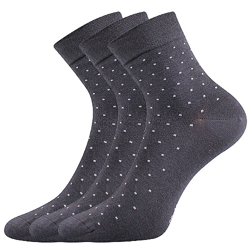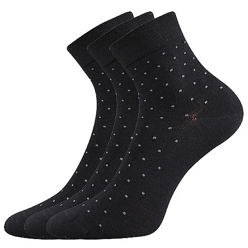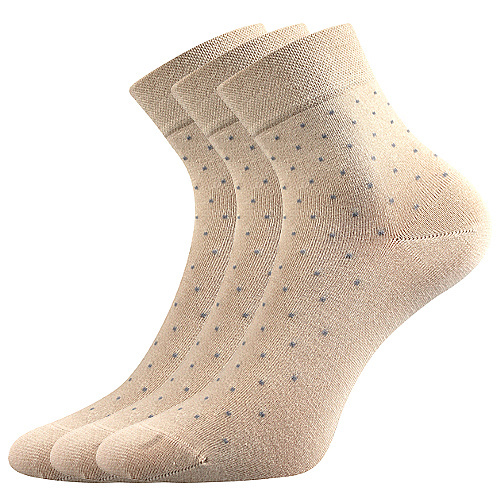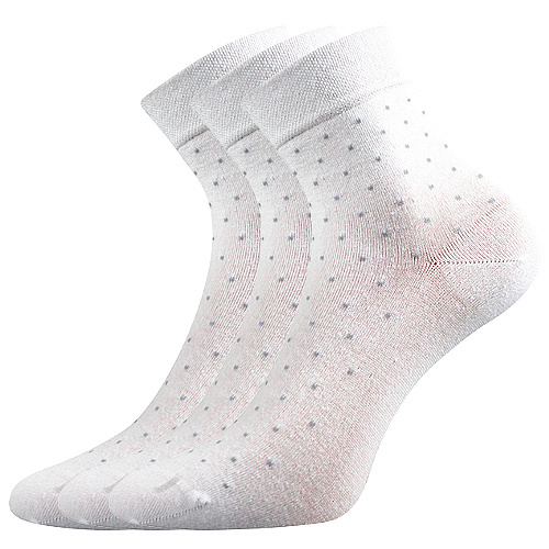 Dámské elegantní ponožky Lonka® FIONA si oblíbíte hned, jak si je obléknete. Ponožky mají střední výšku nad kotníky, zdobené jsou malými puntíky v decentních barvách. Pro vaše pohodlí jsou s velmi jemným a nestahujícím lemem. Kvalitní ponožky jsou z hladkého úpletu, pleteného na 200 jehlovém stroji, špičku mají spojenou plochým řetízkovým švem, který vůbec necítíte. Bavlněné ponožky jsou vhodné pro běžné nošení na doma i v práci.