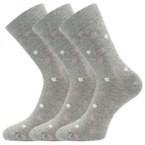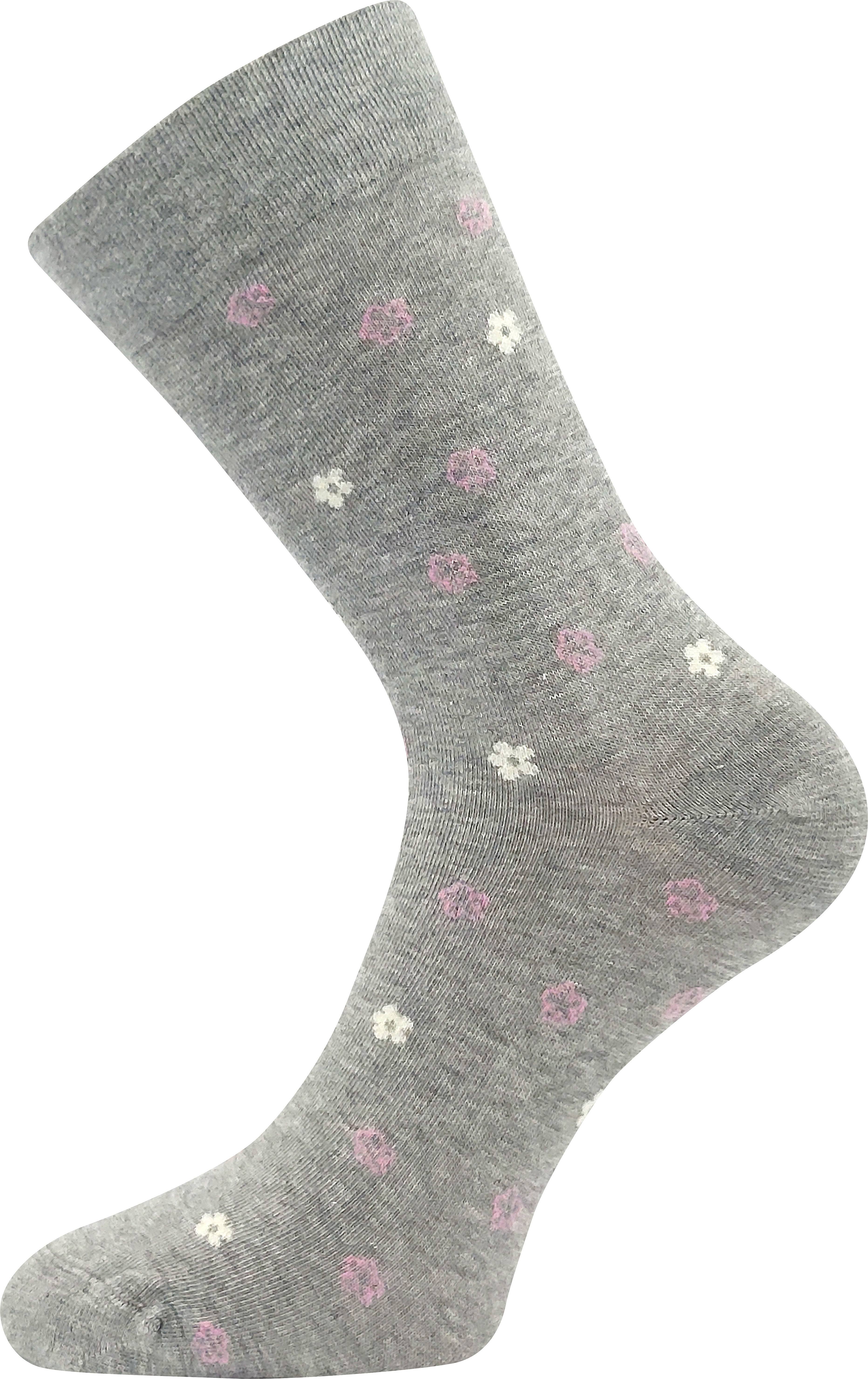 Dámské slabé ponožky Lonka® FLOWRANA jsou kouzelné na první pohled. Celé ponožky v klasické výšce zdobí malé kytičky. Pro maximální pohodlí mají ponožky speciální medicine lem, který nestahuje, ani neškrtí. Kvalitní ponožky jsou z hladkého úpletu, pleteného na 200 jehlovém stroji, špičku mají spojenou plochým řetízkovým švem, který vůbec necítíte. Bavlněné ponožky jsou vhodné pro běžné nošení na doma, tak i v práci.