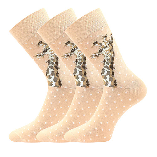 Dámské klasické slabé ponožky Lonka® FOXANA jsou z bambusové viskózy, příjemné na nošení a přátelské k pokožce. 200 jehlový úplet je velmi jemný a hladký. Ponožky mají špici uzavřenou řetízkováním, takže nikde netlačí a pomáhá zamezit vzniku otlaků nebo puchýřů. Pigue lem ponožky má velmi jemný, nikde nestahuje a nezařezává se do pokožky. Klasické vysoké ponožky z bambusu jsou přirozeně antibakteriální, napomáhají k ničení bakterií způsobující zápach. Veselé obrázky zvířátek Vás můžou provázet bez obav po celý den.