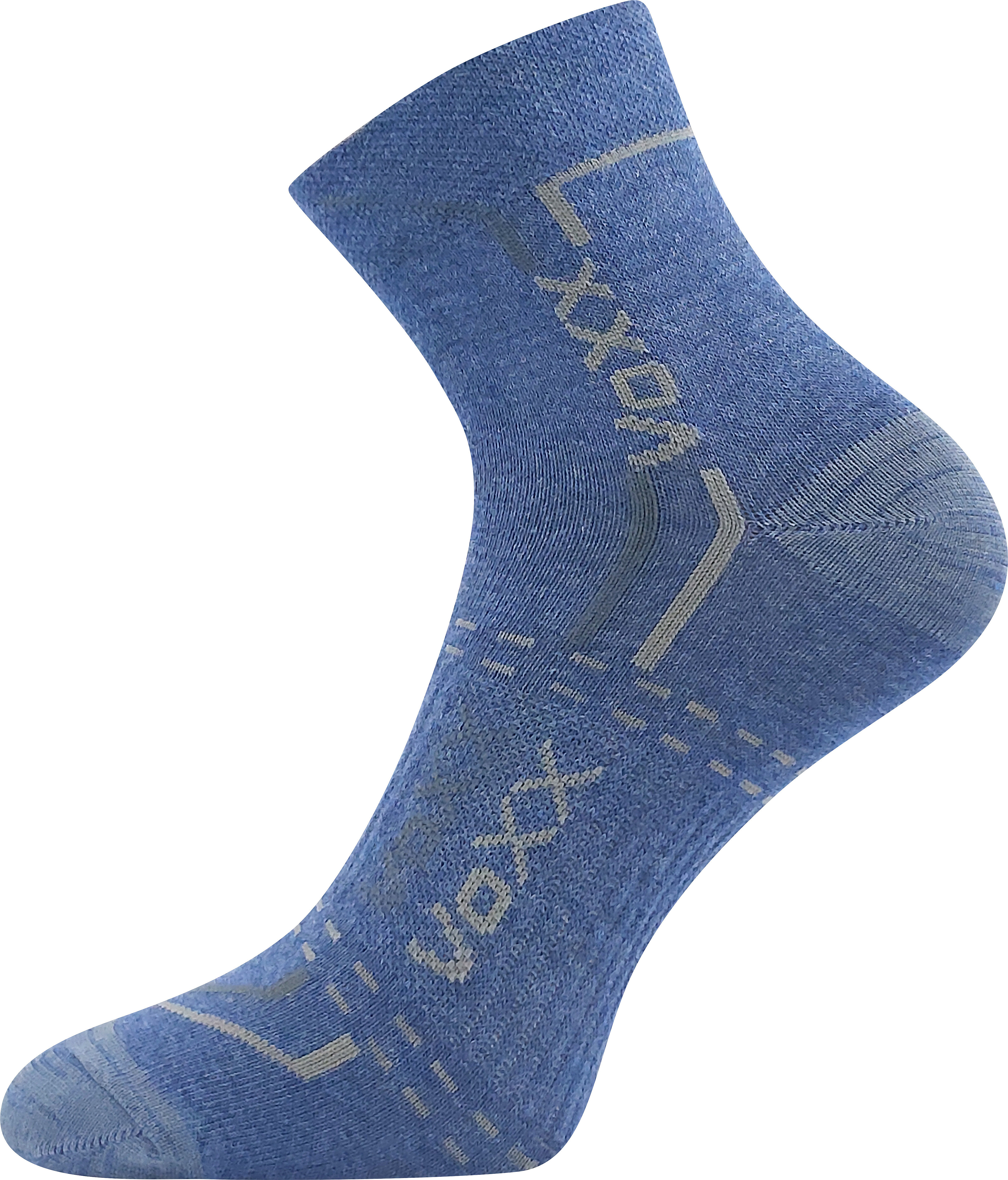 Dámské a pánské ponožky VoXX® FRANZ 03 jsou sportovní ponožky pro každého. Vlhkost pohlcující bavlna je doplněná o elastan, který ponožkám dodává pružnost a dobře sedí na noze. Slabé ponožky ve střední výšce nad kotník jsou výborně prodyšné, elastická zóna přes nárt zabraňuje přetočení ponožek v obuvi. Barevné ponožky pro fitness a sportovní vyžití až po cyklo využijete hodně v letním období, jsou v teplotní třídě A od +10°C do +35°C.