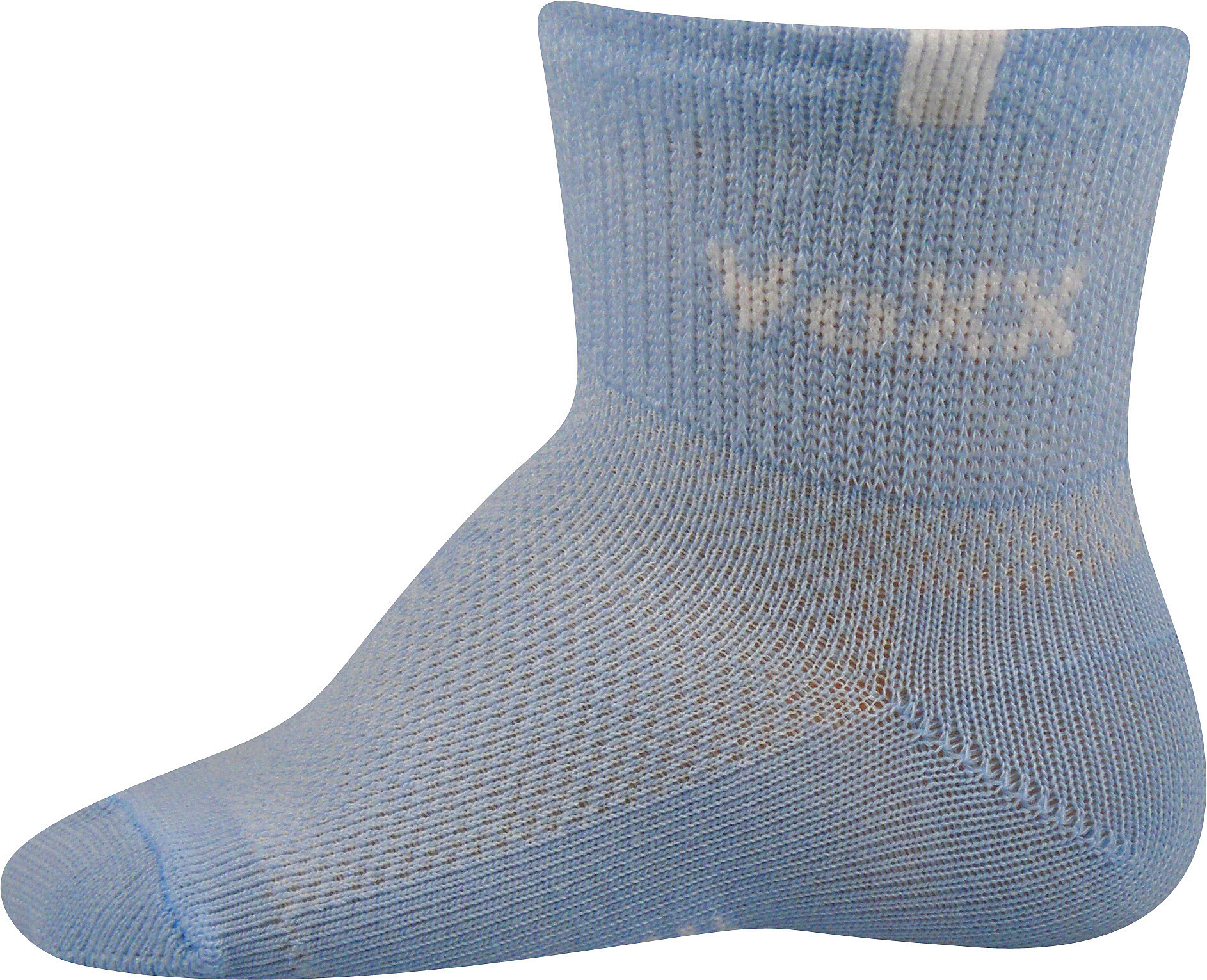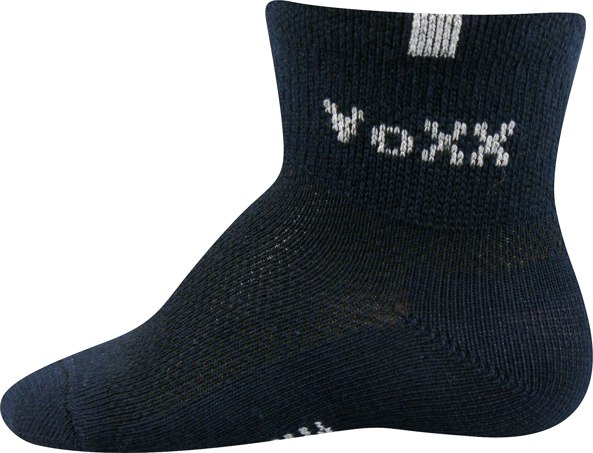 Kojenecké ponožky VoXX® FREDÍČEK udrží malé nožičky v suchu díky velmi prodyšné zóně na nártu. Bavlněná příze je příjemná na nošení a pružný elastan udrží ponožky na svém místě. Malé ponožky pro malé zákazníky nabízíme v jednobarevné i pruhované variantě, pro letní podnebí v teplotní třídě A.