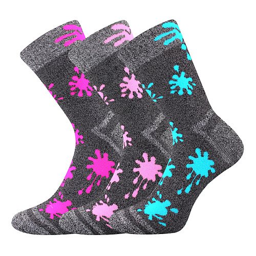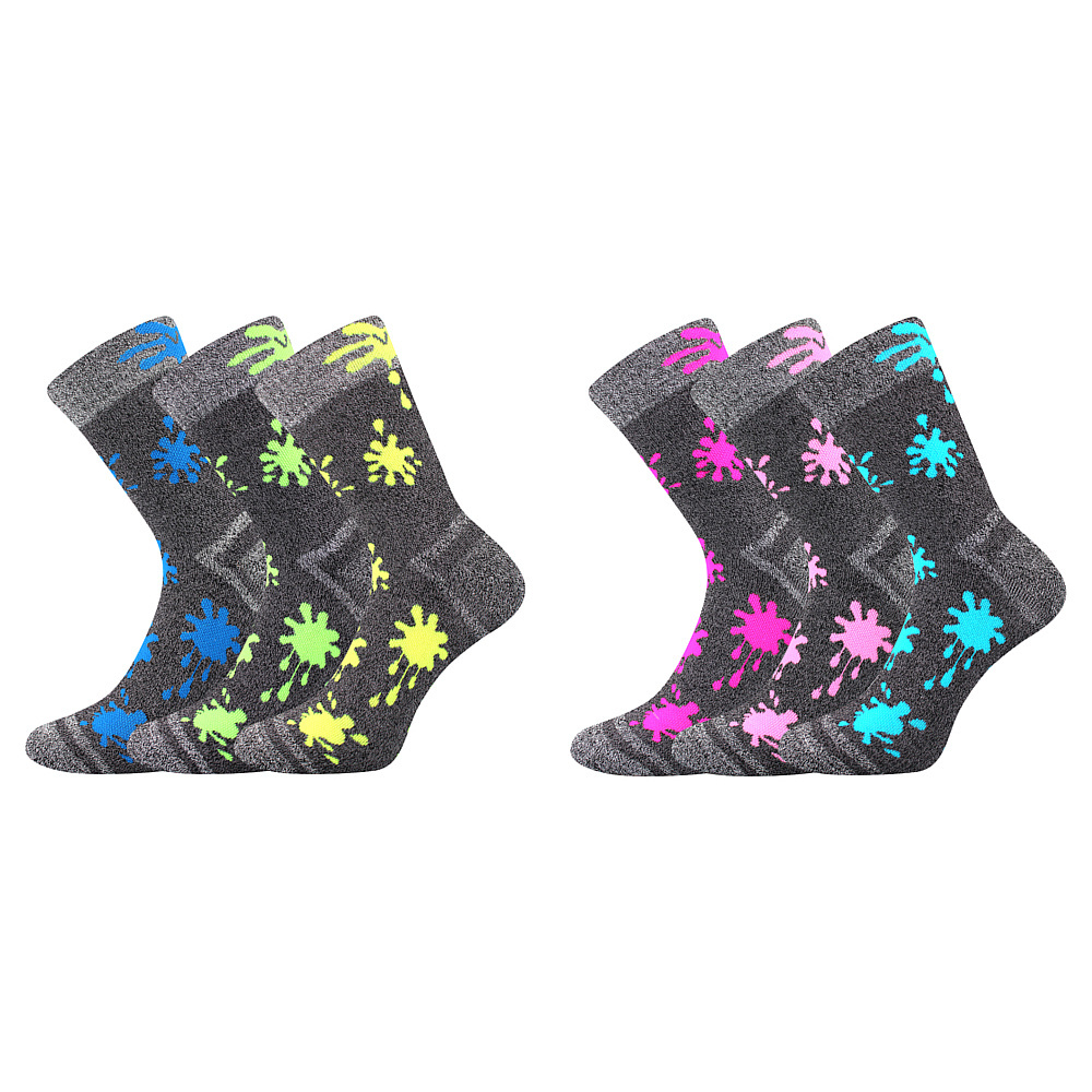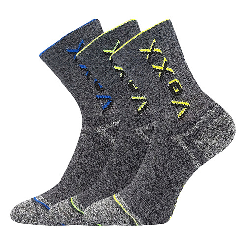 Dětské hřejivé froté ponožky VoXX® HAWKIK si vaše děti hned oblíbí. Jsou šedé melírované s barevnými neonovými detaily. Navíc mají špičku spojenou plochým řetízkovým švem, který nikde netlačí. Měkké a teplé celofroté klasické ponožky v klasické výšce využijete v chladnějším období, jsou v teplotní třídě B -5°C do +20°C. K dostání v mixu po 3 párech pro chlapce nebo dívky.