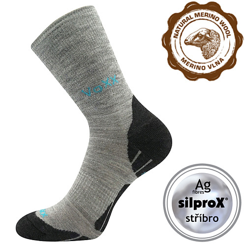 vlna merino - extra jemná ovčí vlna, jemný až hedvábný omak, termoregulační schopnosti, elastické, prodyšné, antibakteriální účinky, silprox® - speciálně vypředené polypropylenové vlákno s obsahem iontů stříbra, zabraňující vzniku zápachu a plísním