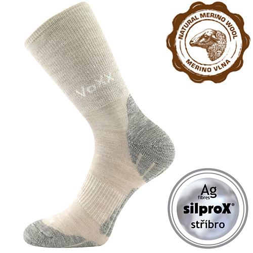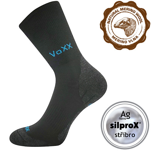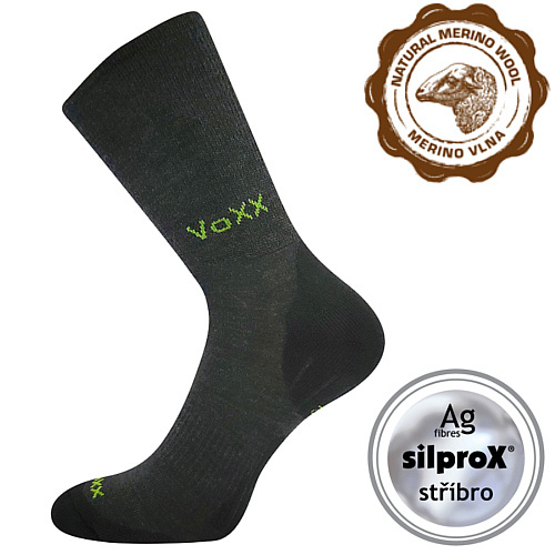 Funkční ponožky VoXX® IRIZAR mají anatomicky tvarované polstrované zóny bránící vzniku otlaků a puchýřů, jemný lem nestahuje nohu, celková konstrukce ponožek VoXX zaručuje prodyšnost. Materiály jsou antibakteriální - merino vlna je přirozeně antibakteriální a silproX® obsahuje ionty stříbra. Vlněné Merino ponožky jsou unisex, s teplotní třídou C až do -20°C se studených nohou nemusíte bát.