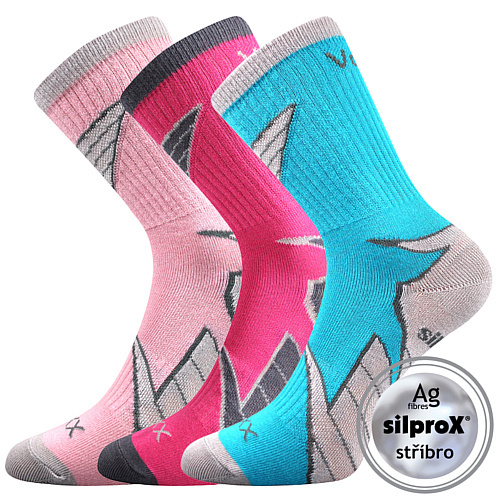 Dětské sportovní ponožky VoXX® JOSKIK jsou vysoké ponožky s volným neškrtícím lemem určené na sport, ale i na celodenní nošení. Bavlněné ponožky dobře odvádí pot, materiál silproX® s ionty stříbra působí antibakteriálně. Barevné ponožky nabízíme v mixu po 3 párech v dívčích a chlapeckých kombinacích. Slabé ponožky jsou v teplotní třídě A, určené na letní období.