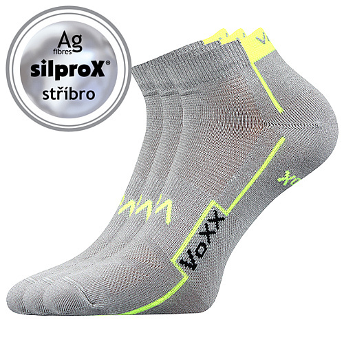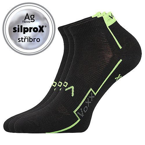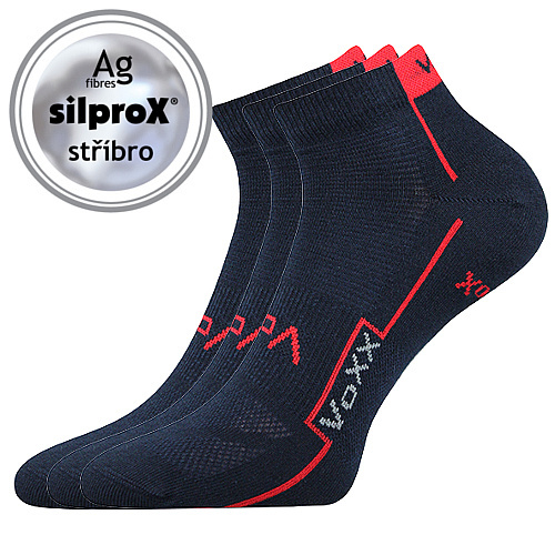 Sportovní ponožky VoXX® KATO jsou krátké ponožky na letní sportovní aktivity i celodenní nošení. Extra prodyšná konstrukce na nártu společně s bavlnou pohlcující vlhkost a materiálem silproX® s ionty stříbra omezují tvorbu bakterií a plísní. Bakterie jsou stříbrem přirozeně zničeny a nedochází pak k tvorbě zápachu. Antibakteriální ponožky jsou v teplotní třídě A.