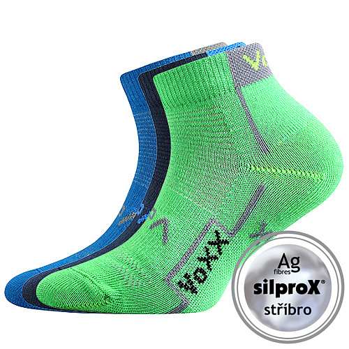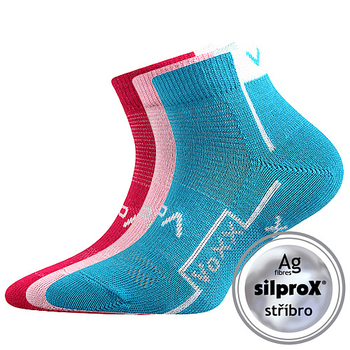 Dětské sportovní ponožky VoXX® KATOIK jsou krátké ponožky na letní sportovní aktivity i celodenní nošení. Extra prodyšná konstrukce na nártu společně s bavlnou pohlcující vlhkost a materiálem silproX® s ionty stříbra omezují tvorbu bakterií a plísní. Bakterie jsou stříbrem přirozeně zničeny a nedochází pak k tvorbě zápachu. Antibakteriální ponožky v praktickém mixu po 3 párech v krásných pastelových barvách pro kluky i holky jsou v teplotní třídě A.