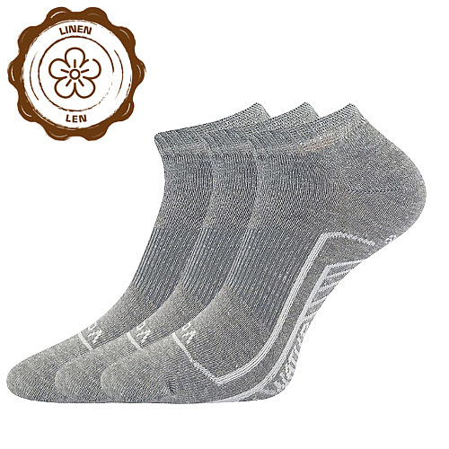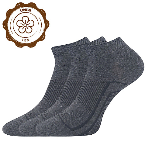 Tenké ponožky VoXX® LINEMUS v krátké výšce pod kotník budete nosit po celé léto. Unisex odolné ponožky z chladivého lnu, bavlny a elastanu nesundáte z nohy. Lněné ponožky jsou vysoce prodyšné, řetízkovaná špice nikde netlačí a zajišťuje pohodlí a komfort při nošení, jemný lem nohu nestahuje a elastická zóna po obvodu nártu zabraňuje přetáčení ponožky v obuvi. Slabé ponožky mají teplotní třídu A - od +10°C do +35°C.