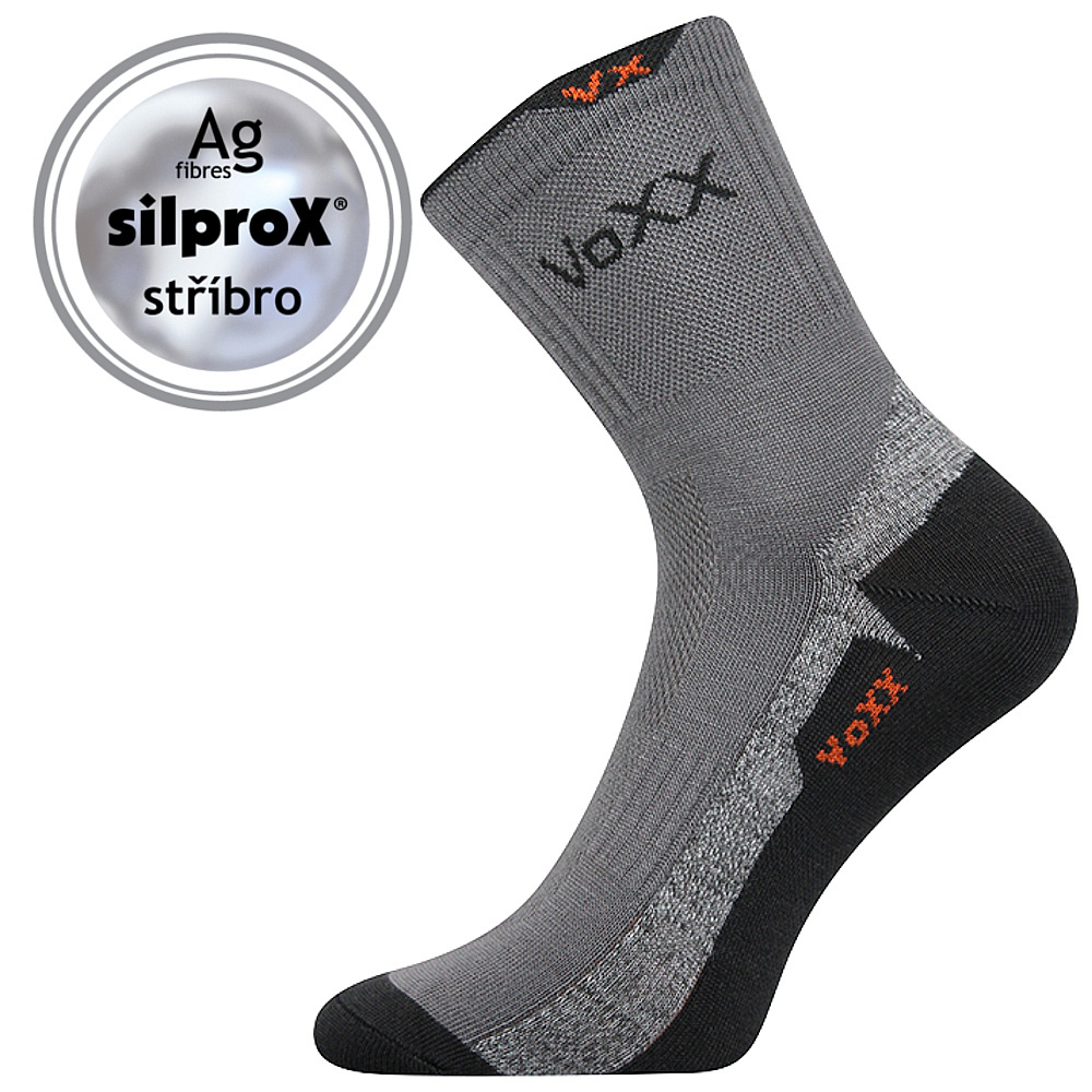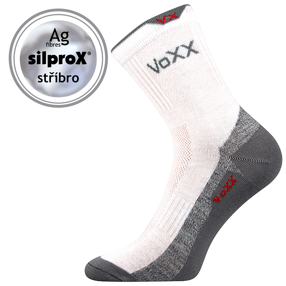 Unisex ponožky VoXX® MASCOTT jsou vyrobené ze speciálního polypropylenového vlákna silproX®, které obsahuje ionty stříbra. Tento materiál účinně zabraňuje tvorbě zápachu, omezuje tvorbu bakterií a plísní. Ty jsou stříbrem přirozeně zničeny, ponožky jsou tedy antibakteriální. Prodyšná zóna výborně odvádí pot a elastická bandáž na nártu brání přetočení ponožek v obuvi. Nosit je můžete bez obav po celý den. Dámské a pánské ponožky vydrží i zátěž při běhání nebo jiném sportování. Slabé ponožky v teplotní třídě A využijete hlavně v létě v rozmezí teplot od +10°C do +35°C.