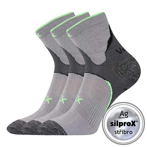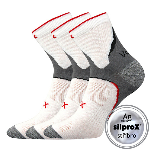 Dámské a pánské slabé ponožky VoXX® MAXTER jsou vyrobené ze speciálního polypropylenového vlákna silproX®, které obsahuje ionty stříbra. Tento materiál účinně zabraňuje tvorbě zápachu, omezuje tvorbu bakterií a plísní. Ty jsou stříbrem přirozeně zničeny, ponožky jsou tedy antibakteriální. Prodyšné zóny výborně odvádí pot a elastická bandáž na nártu brání přetočení ponožek v obuvi. Celodenní nošení není problém. Dámské a pánské ponožky využijete i při sportu, vydrží námahu při běhu nebo dalších aktivitách. Slabé ponožky VoXX® v teplotní třídě A využijete hlavně v létě v rozmezí teplot od +10°C do +35°C.