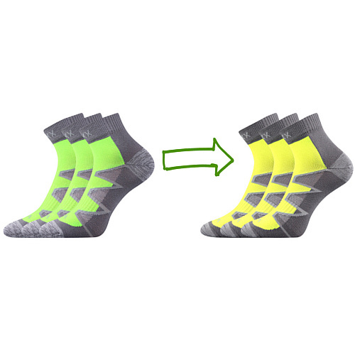 Slabé sportovní ponožky VoXX® MONSA jsou ponožky pro pány i dámy. Díky jasným neónovým barvám budete nepřehlédnutelní. Vlhkost pohlcující bavlna je doplněná o elastan, který ponožkám dodává pružnost a dobře sedí na noze. Slabé ponožky jsou výborně prodyšné, elastická zóna přes nárt zabraňuje přetočení ponožek v obuvi. Středně vysoké ponožky jsou ideální pro cyklistiku nebo fitness a sportovní aktivity v letním období. Reflexní ponožky v teplotní třídě A využijete při letních sportovních činnostech od +10°C do +35°C.