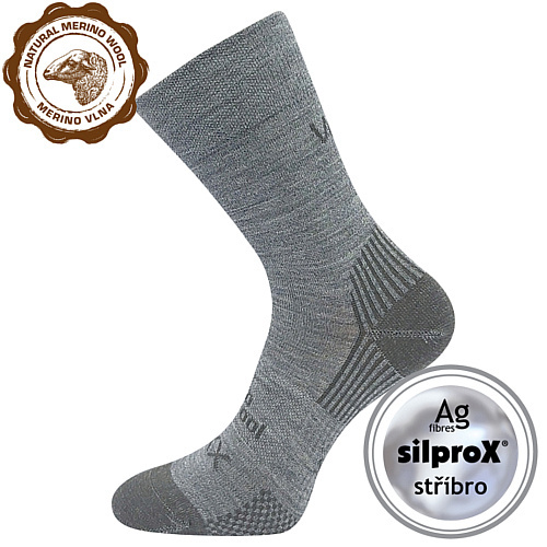Sportovní vlněné ponožky VoXX® OPTIMUS mají speciální „medicine“ lem, který lýtko nestahuje a neškrtí. Díky vyztuženému chodidlu jsou opravdu odolné vůči opotřebení. Funkční ponožky mají špice uzavřenou řetízkováním, takže nikde netlačí, použité materiály jsou antibakteriální - merino vlna je přirozeně antibakteriální a silproX® obsahuje ionty stříbra, v teplotní třídě B-C.