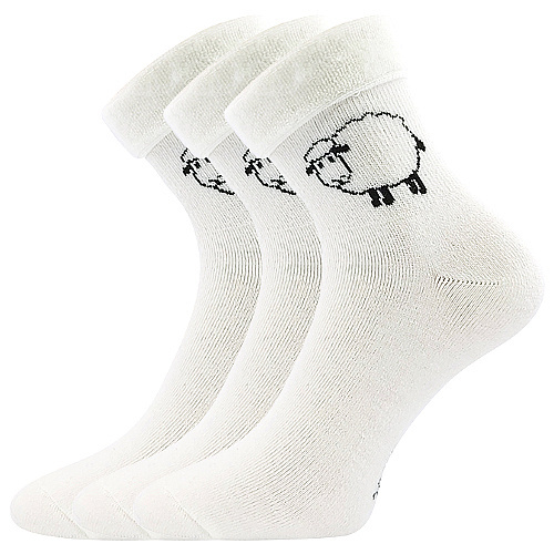 Zimní ponožky Boma® OVEČKANA s ovčí vlnou jsou teplé a velice hřejivé ponožky z froté úpletu. Uvnitř jsou počesané a tím pádem příjemně hebké a měkké. Lem ponožky můžete nosit natažený nebo si ho efektně ohrnout. Tyto ponožky poskytují maximální termoizolaci i v chladném zimním počasí, vzít si je můžete i na lenošení u krbu nebo do postele, doopravdy vás zahřejí.