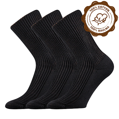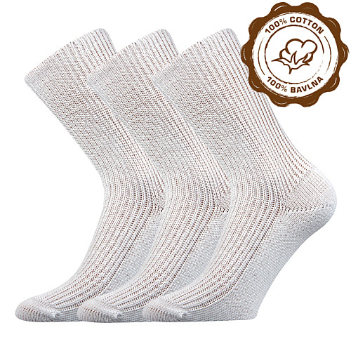 Silné ponožky Boma® PEPINA jsou 100% bavlněné ponožky bez dalších příměsí, na 100% přírodní! Čistě přírodní materiál je vhodný pro ty, kteří trpí plísněmi, ekzémy, nadměrným pocením nebo nesnesou žádná umělá vlákna. Žebrovaný úplet je prodyšný, lem ponožky má velmi jemný, nikde nestahuje a nezařezává se do pokožky. V těchto ponožkách budete mít nohy opravdu jako v bavlnce. Dostupné i v nadměrné velikosti.
