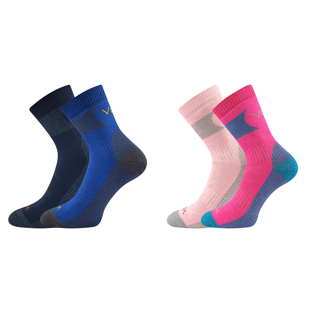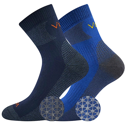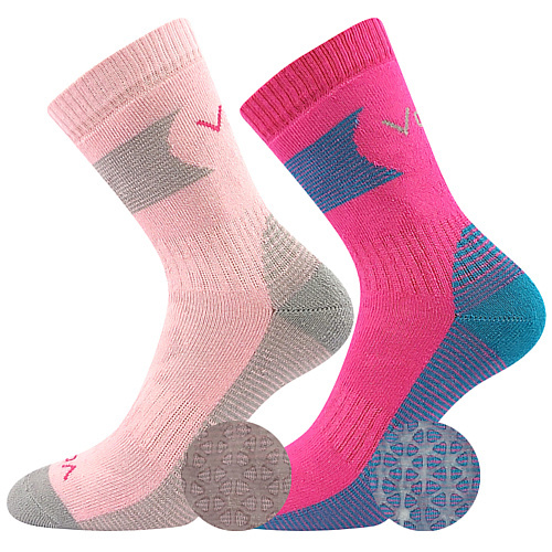 Dětské ponožky VoXX® PRIME ABS jsou teplé sportovní ponožky. Hřejivé celofroté je příjemné na nošení. Zesílené froté chodidlo tlumí nárazy a nohy tak máte jako v bavlnce. Extra volný lem ponožek je pružný a jemný, aby nohu nesvíral. Bavlněné ponožky VoXX® jsou hebké na omak dokáží dobře pojmout vlhkost. Vaše děti nechtějí nosit bačkory? Kupte jim naše ponožky s protiskluzným chodidlem a máte po problému! Ve výhodném balení 2 párů v barvách pro dívky i pro chlapce. V teplotní třídě B.