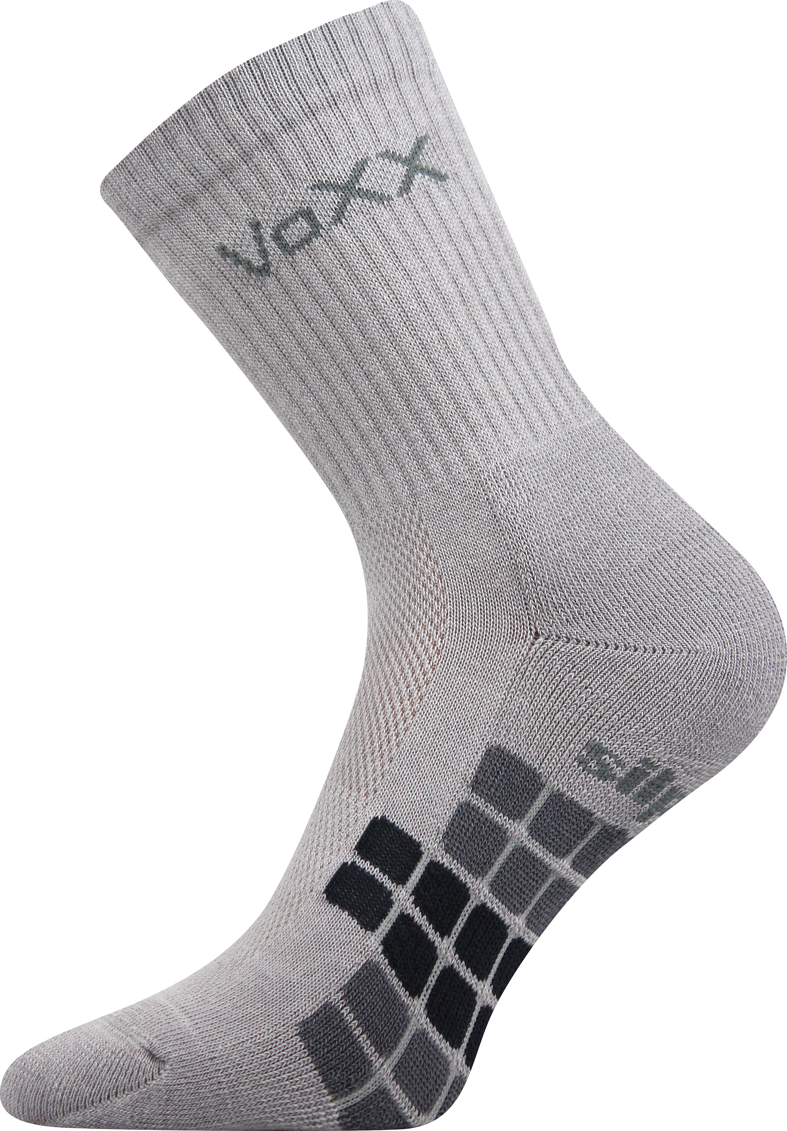 Sportovní ponožky VoXX® RAPTOR jsou ideální pro tenis, halové a indoorové aktivity. Bavlněné ponožky obsahují i materiál silproX® s antibakteriální ochranou ionty stříbra, díky tomu i po celodenním nošení neucítíte žádný zápach. Zesílené polstrované froté chodidlo vydrží zátěž při sportování a výrazně tlumí nárazy. Sportovní ponožky mají jemně pletený vysoký lem, takže noha není nepříjemně stahována a nezařezává se do pokožky. Konstrukce zaručuje vysokou prodyšnost na nártu. Ponožky jsou v teplotní třídě A od +10°C do +35°C.