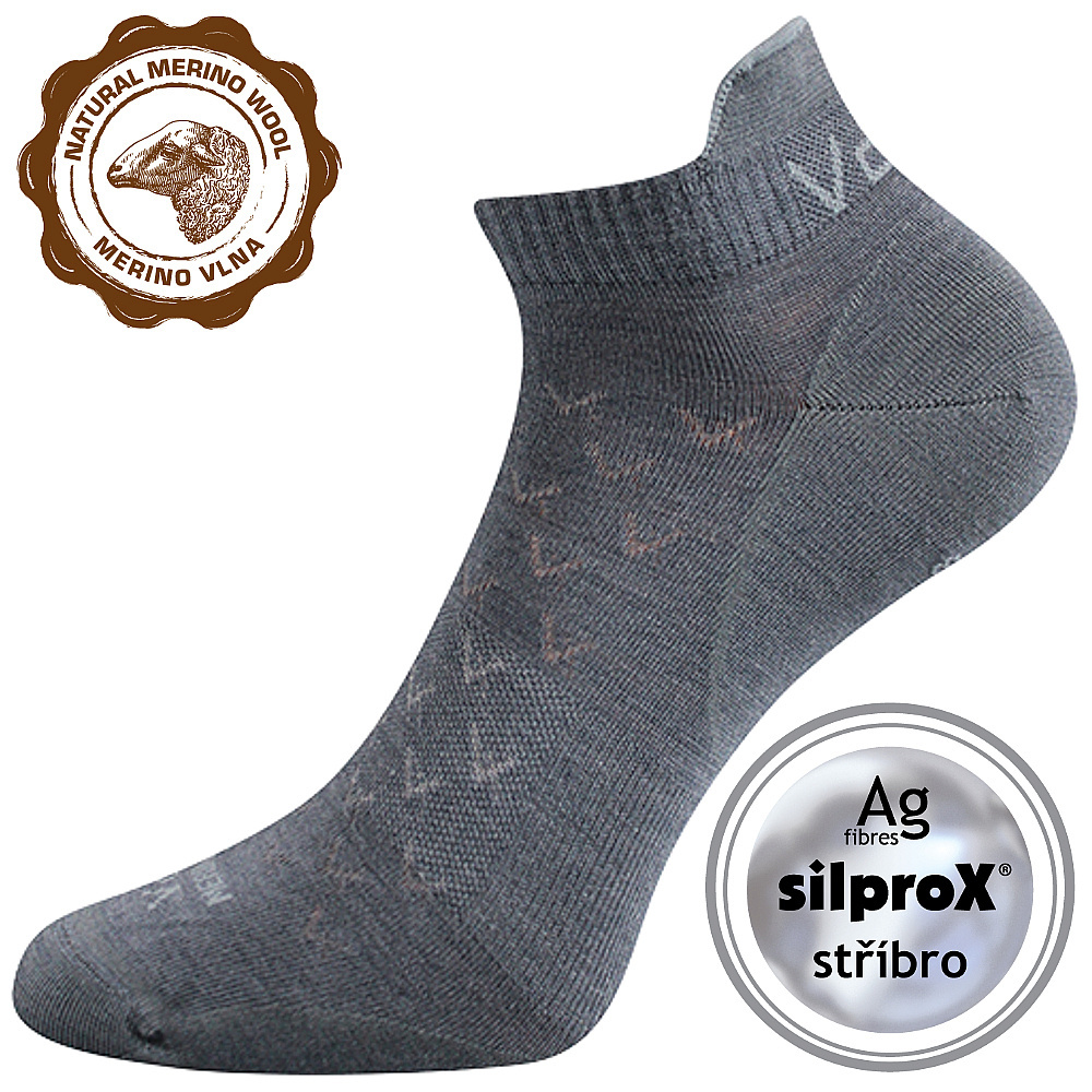 vlna merino - extra jemná ovčí vlna, jemný až hedvábný omak, termoregulační schopnosti, elastické, prodyšné, antibakteriální účinky, silprox® - speciálně vypředené polypropylenové vlákno s obsahem iontů stříbra, zabraňující vzniku zápachu a plísním