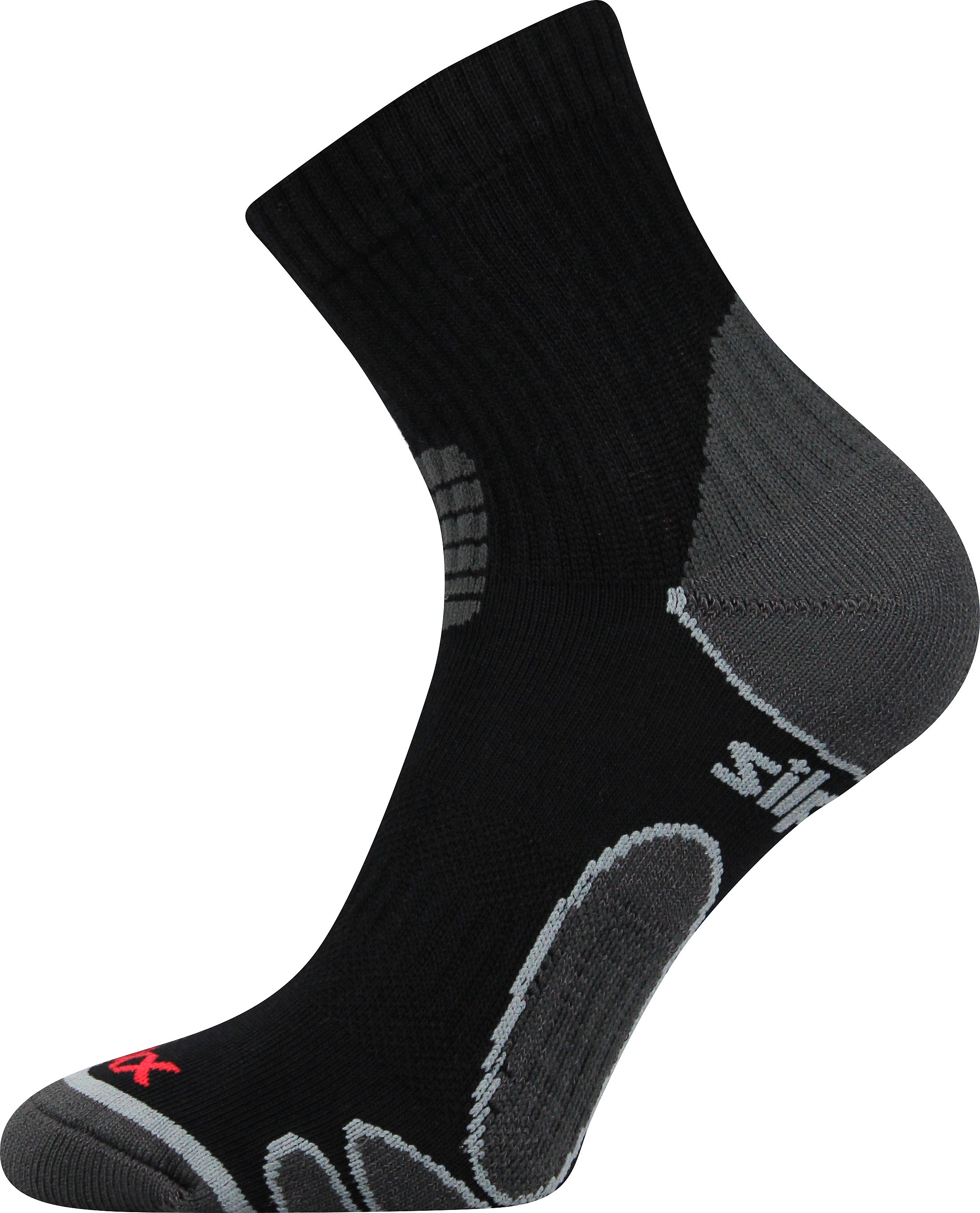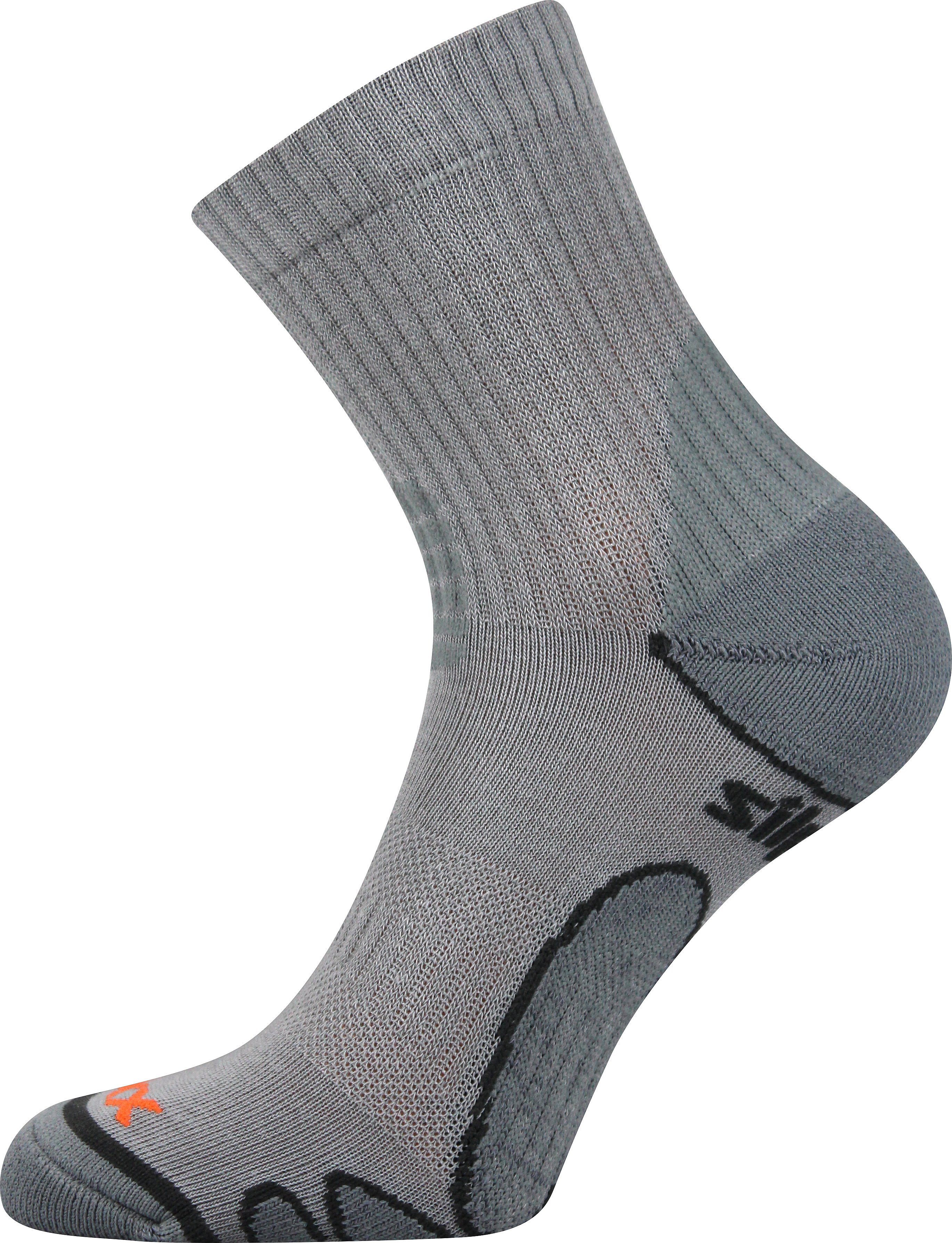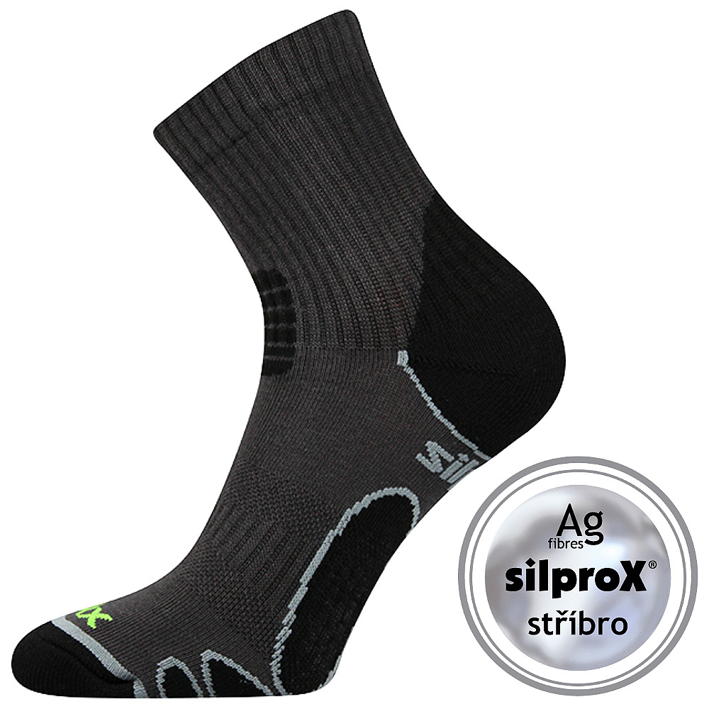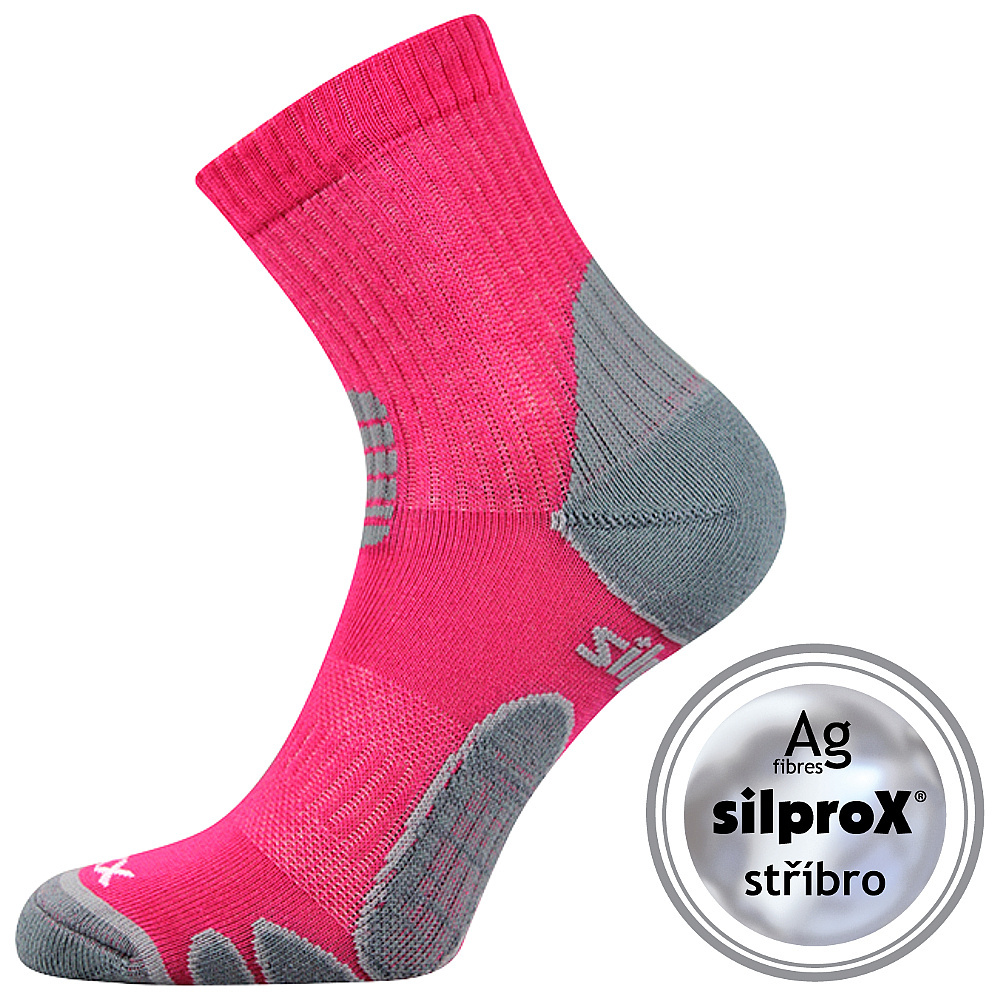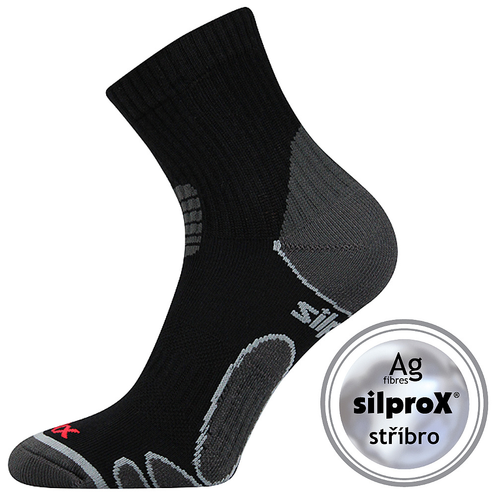 Unisex sportovní ponožky VoXX® SILO jsou středně vysoké barevné ponožky určené na běh, tenis, halové sporty i celodenní nošení. Zesílené froté polstrované chodidlo zabraňuje otlakům a puchýřům, tlumí nárazy a napomáhá větší výdrži při extrémní námaze a zátěži při každodenním použití. Přírodní bavlna je příjemná na omak a dobře pohlcuje vlhkost. Antibakteriální ochranu před zápachem zajišťuje materiál silproX® s ionty stříbra. Vyšší lem je jemný a nestahující. Prodyšné ponožky VoXX® v teplotní třídě A jsou vhodné do rozmezí teplot od +10°C do +35°C.