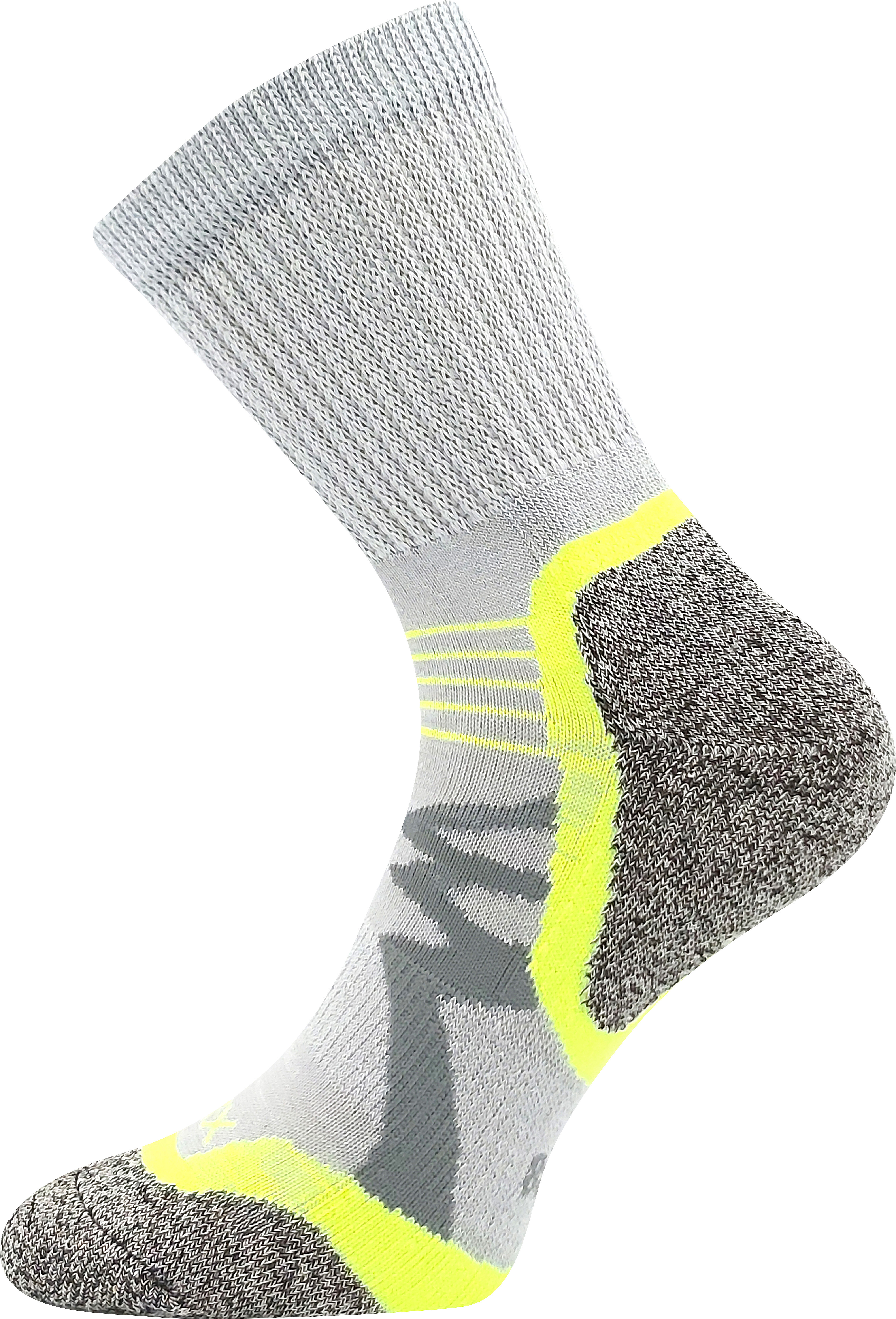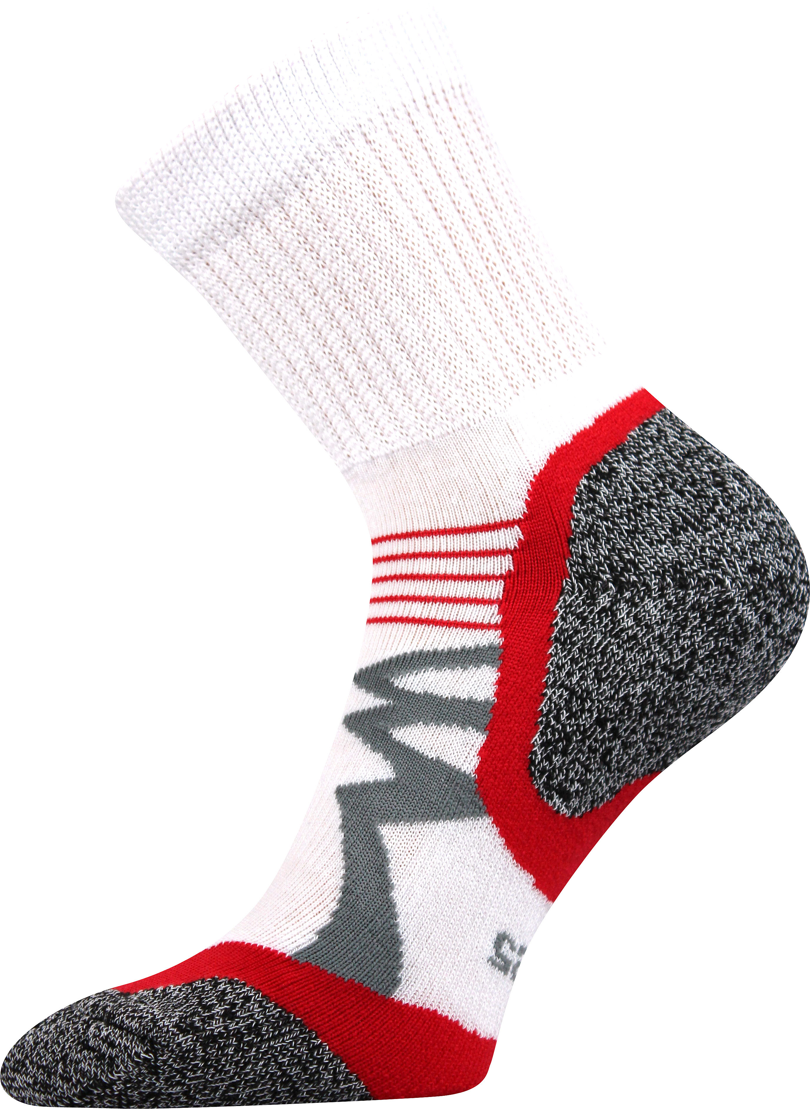 Funkční sportovní ponožky VoXX® SIMPLEX jsou vyšší ponožky určené na běh, tenis, halové sporty nebo celodenní nošení. Zesílené froté polstrované chodidlo zabraňuje otlakům a puchýřům, tlumí nárazy a napomáhá větší výdrži při extrémní námaze a zátěži při každodenním použití. Bavlněné ponožky jsou příjemné na omak a dobře pohlcují vlhkost. Přidaný funkční materiál FILACTIVE® je příze složená z vláken bavlny a polypropylenu Meraklon, odolný proti opotřebení, má dobré termoizolační vlastnosti a výborně odvádí vlhkost. Vyšší lem je jemný, neškrtí ani nestahuje. Prodyšné ponožky VoXX® v teplotní třídě B můžete nosit v chladnějším období při teplotách od -5°C do +20°C.