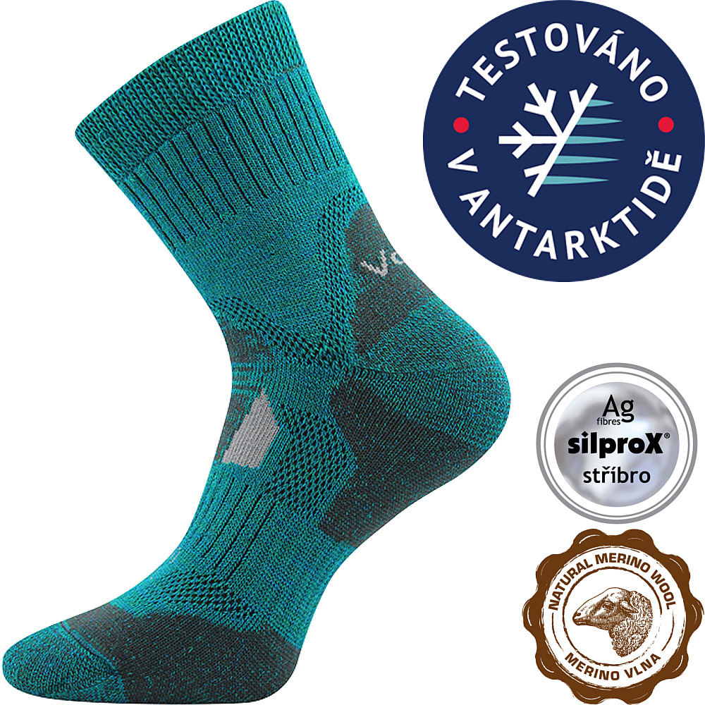 Termo ponožky VoXX® STABIL jsou silné ponožky prověřené samotnými „polárníky“ na několika místech drsné Antarktidy. Díky vysokému podílu merino vlny CLIMAYARN je můžete nosit po celý den i v extrémně mrazivém prostředí až do - 35°C. VoXX® ponožky jsou unisex a pro sportovní účely jsou vybaveny polstrovanými zónami proti otlakům a puchýřům, vysokou prodyšností a antibakteriální ochranou ionty stříbra zabraňující vzniku zápachu.