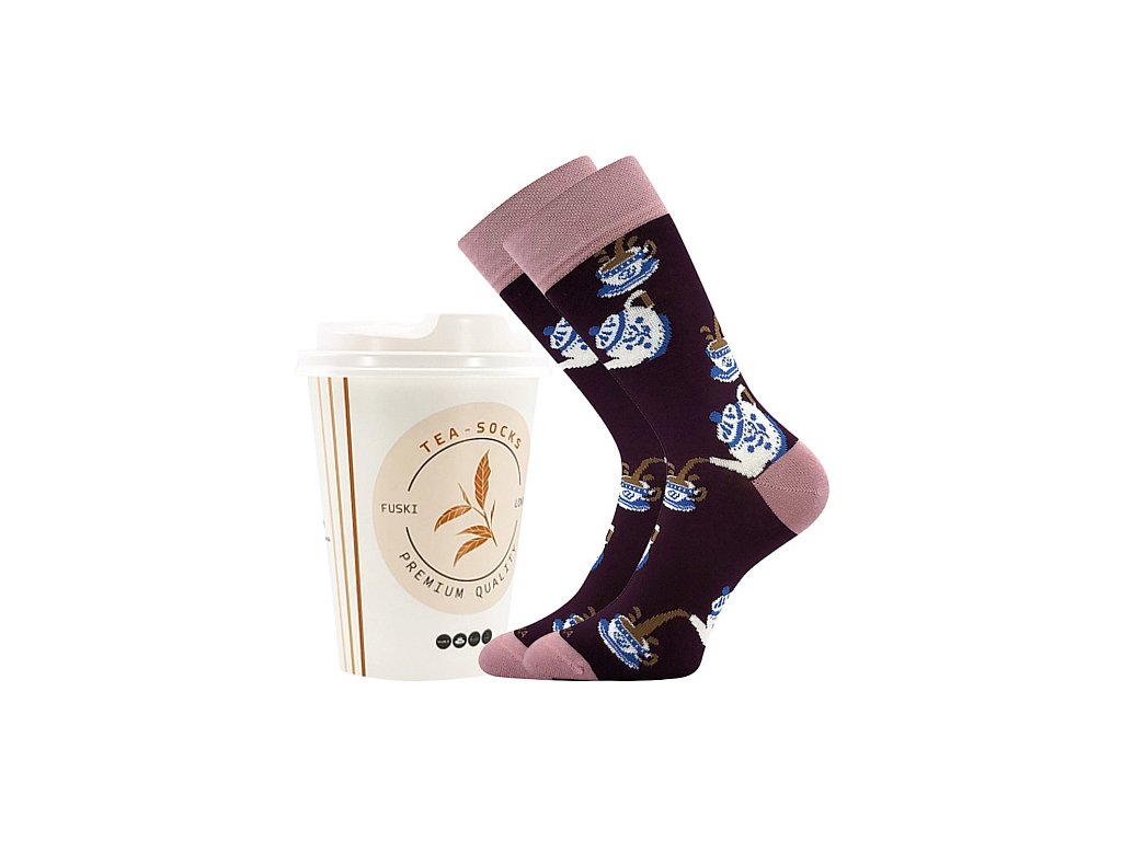 Originální ponožky Lonka® TEA jsou díky vysokému podílu česané bavlny příjemné na omak, přátelské k pokožce a dobře pohlcují vlhkost. Klasické ponožky mají řetízkovanou špici, která nikde netlačí, zabraňuje tvorbě puchýřů a zajišťuje tak pohodlí a komfort při nošení. Pique lem je jemný, nohu nestahuje a neškrtí. Dámské a pánské ponožky s motivem ČAJ najdete vtipně zabalené v originálním nápojovém kelímku. Balení obsahuje 1 pár.