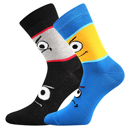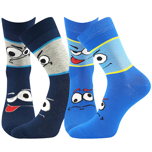 Dětské vtipné ponožky Boma® TLAMIK s obrázky šklebíků, obludek a ksichtíků. Klasické ponožky jsou z přírodní bavlny, příjemné na omak i k pokožce a dobře pohlcují vlhkost. Lem ponožek je jemný a nestahující. Veselé dívčí a chlapecké ponožky nabízíme v balení 2 párů.