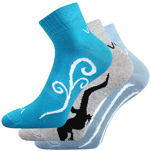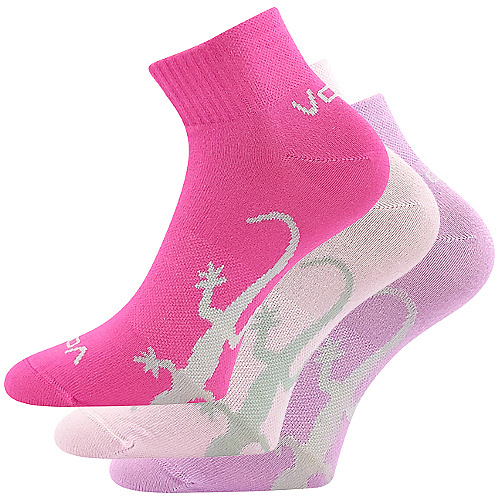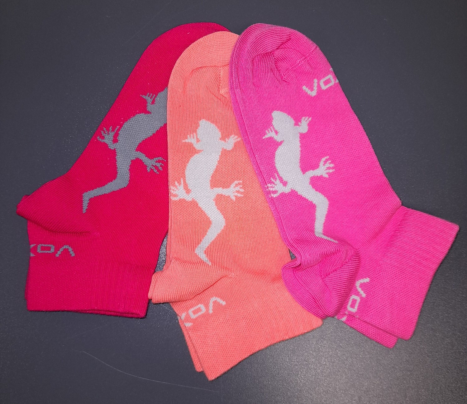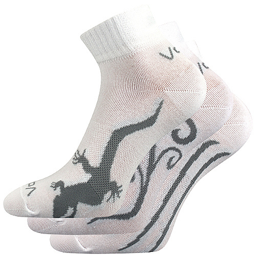 Dámské letní sportovní ponožky VoXX® TRINITY vám padnou jako ulité a zároveň budete nepřehlédnutelná. Ponožky v módních pestrých barvách zdobí roztomilé ještěrky. Bavlněné ponožky mají elastickou zónu na nártu, zabraňující přetáčení ponožek v obuvi a jemný svěr lemu. V letních teplotách oceníte vysoký odvod potu, puchýře ani otlaky se vám neudělají díky řetízkované špici. V teplotní třídě A.