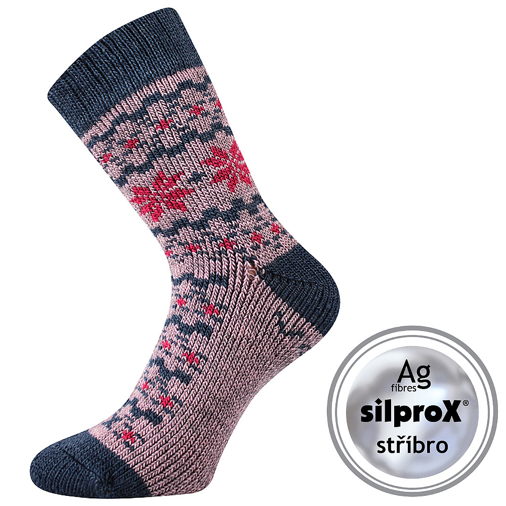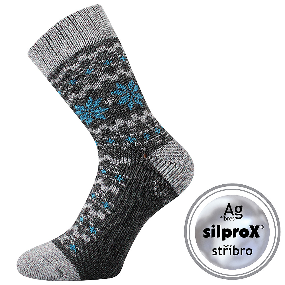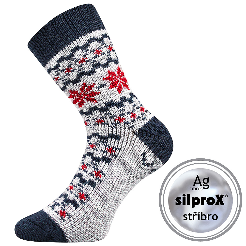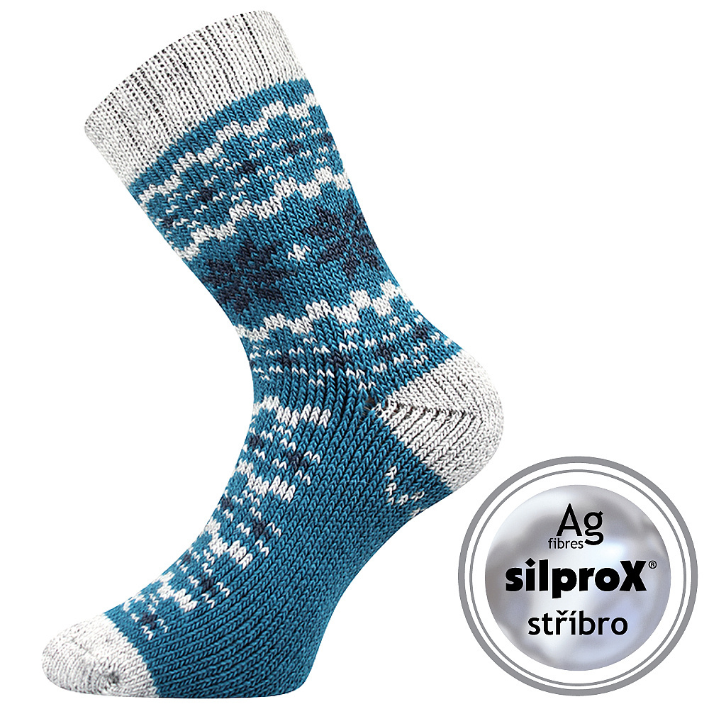 Silné zimní ponožky VoXX® TRONDELAG jsou teplé ponožky kolekce VoXX®. Budete se cítit jako v bavlnce díky jejich silnému froté doplněného navíc o polstrované zóny proti otlakům a puchýřům. Jemný svěr lemu nikde nohu nestahuje, vysoká prodyšnost materiálu zajišťuje komfort při nošení. Díky přidaným iontům stříbra jsou ponožky antibakteriální, nevzniká žádný zápach. Robustní ponožky s norským vzorem v mnoha barvách najdete v teplotní třídě C v rozmezí od -20°C do +5°C.