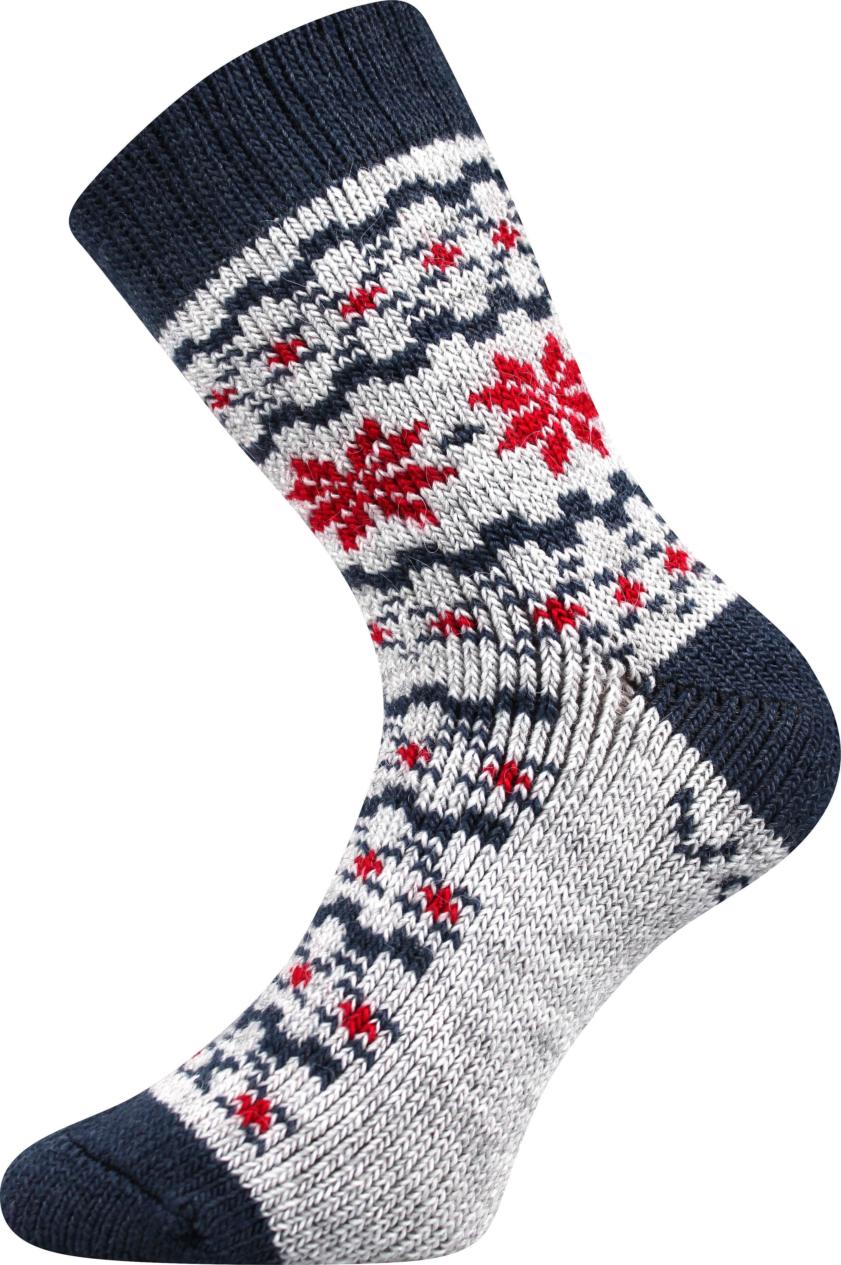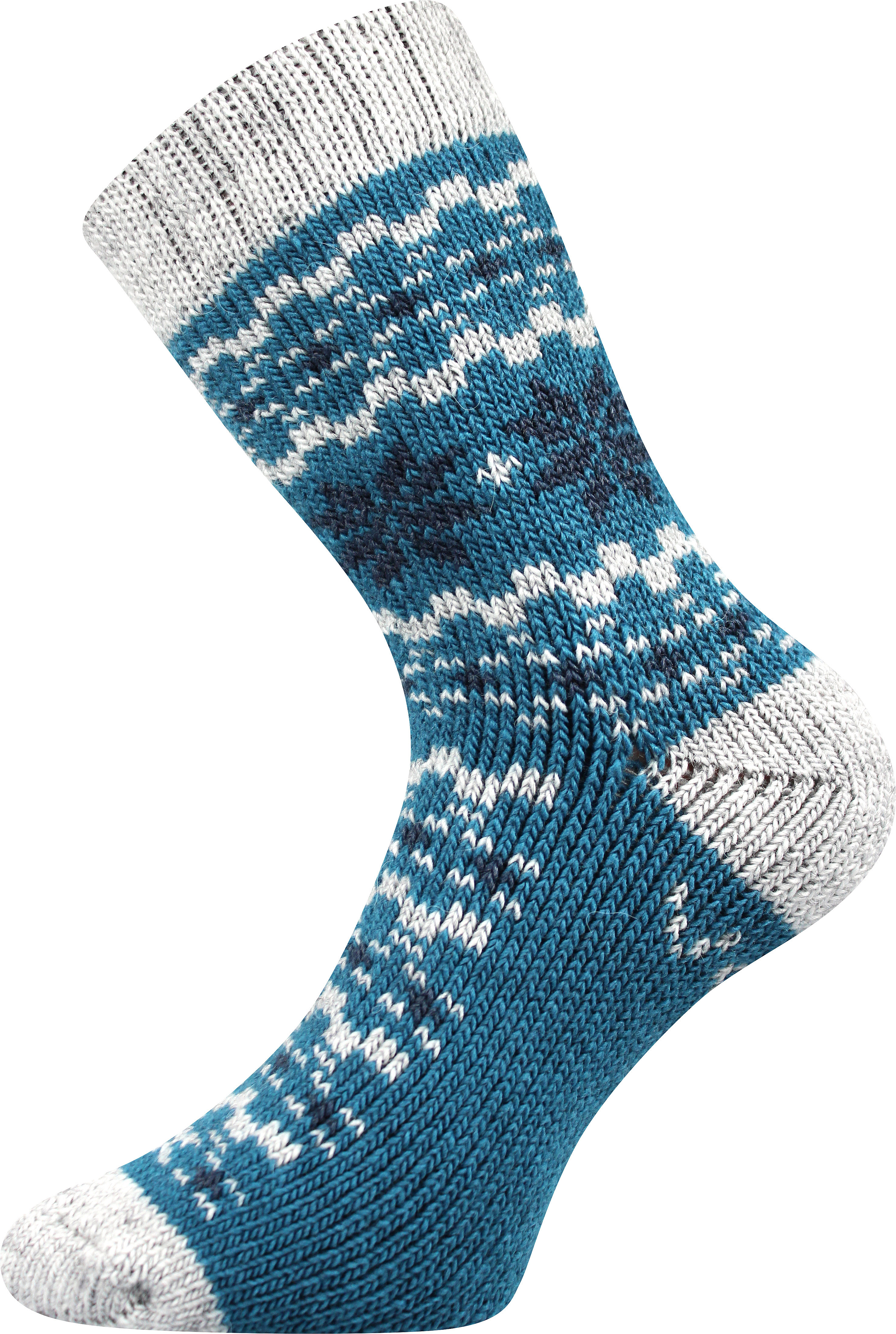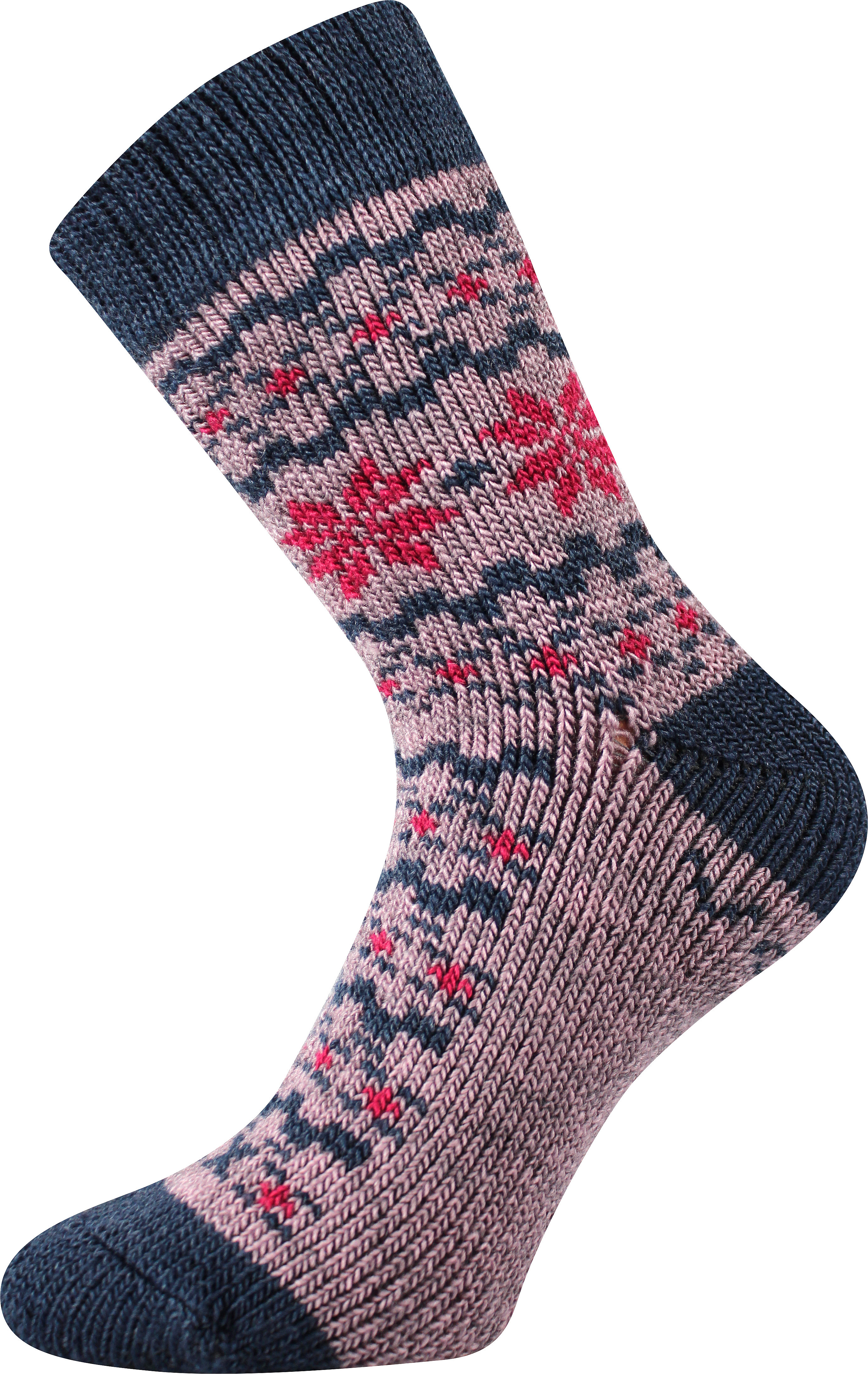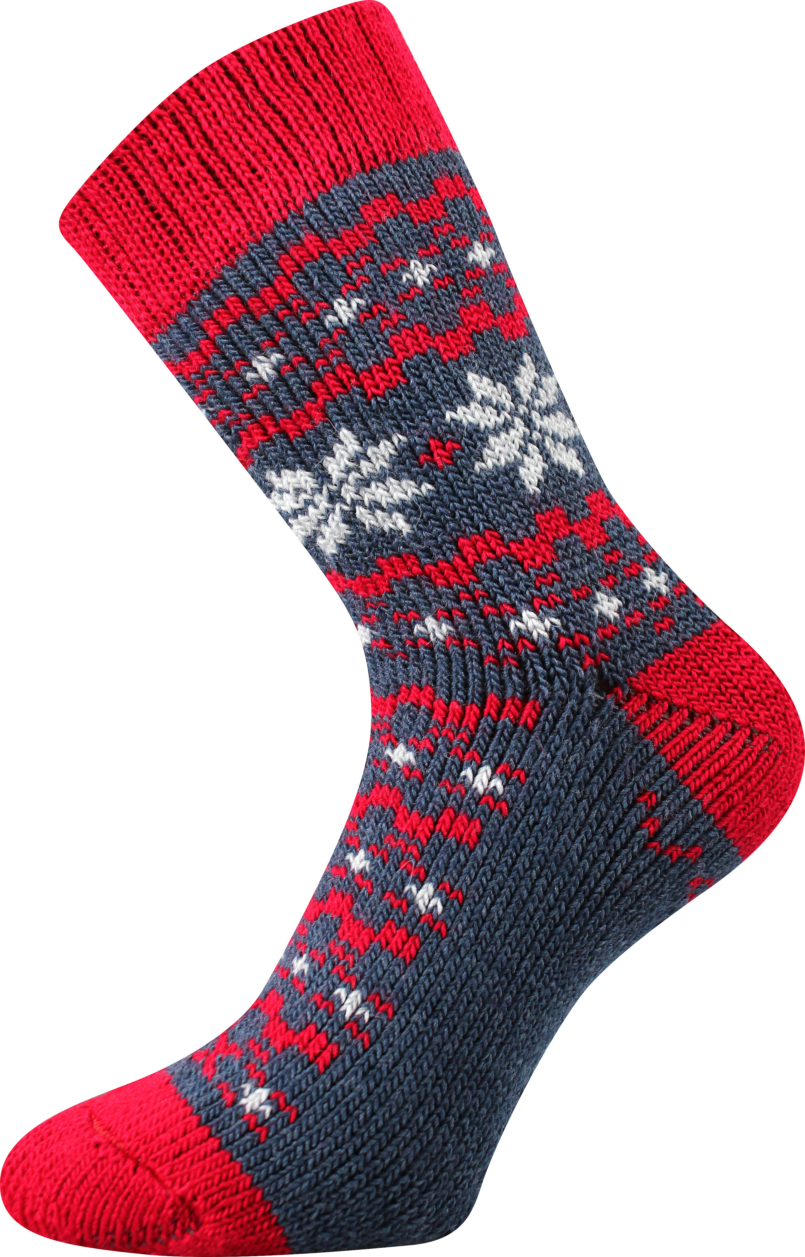 Silné zimní ponožky VoXX® TRONDELAG jsou teplé ponožky kolekce VoXX®. Budete se cítit jako v bavlnce díky jejich silnému froté doplněného navíc o polstrované zóny proti otlakům a puchýřům. Jemný svěr lemu nikde nohu nestahuje, vysoká prodyšnost materiálu zajišťuje komfort při nošení. Díky přidaným iontům stříbra jsou ponožky antibakteriální, nevzniká žádný zápach. Robustní ponožky s norským vzorem v mnoha barvách najdete v teplotní třídě C v rozmezí od -20°C do +5°C.