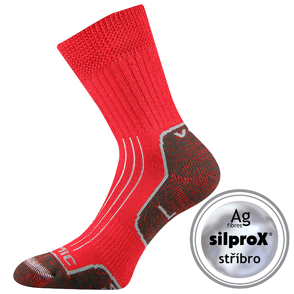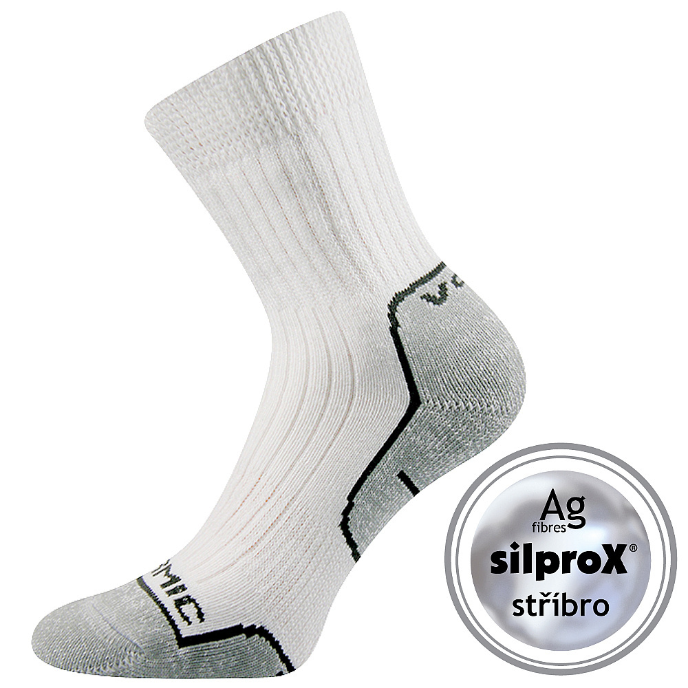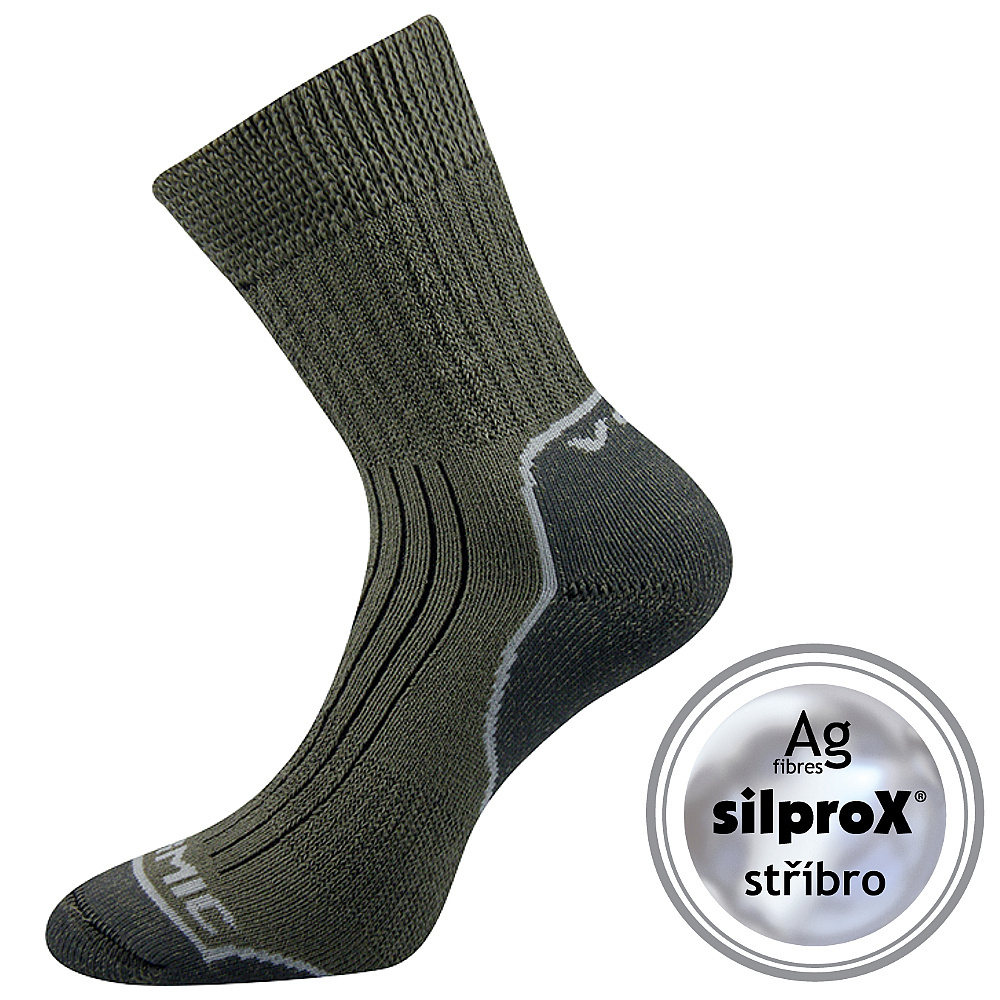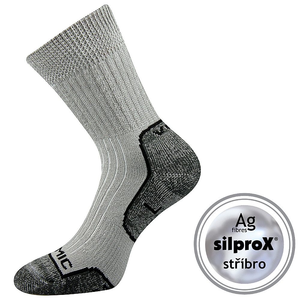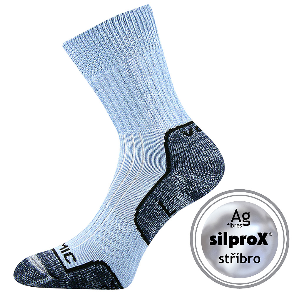 Funkční thermo ponožky VoXX® ZENITH jsou trekingové froté ponožky na treking, horskou turistiku a outdoorové aktivity. Anatomické tvarování na levou a pravou nohu udrží nohy neustále v pohodlí i při náročném a dlouhotrvajícím pohybu. Díky antibakteriální ochraně ionty stříbra v materiálu silprox® je značně omezena tvorba bakterií a plísní. Bakterie jsou stříbrem přirozeně zničeny a nedochází pak k tvorbě zápachu. Chodidlo je vyztužené, lem je jemný a nestahující, konstrukce dobře odvádí pot od pokožky. Froté ponožky pro chladnější období jsou v teplotní třídě C od -20°C do +5°C, navíc dostupné i nadměrných velikostech.