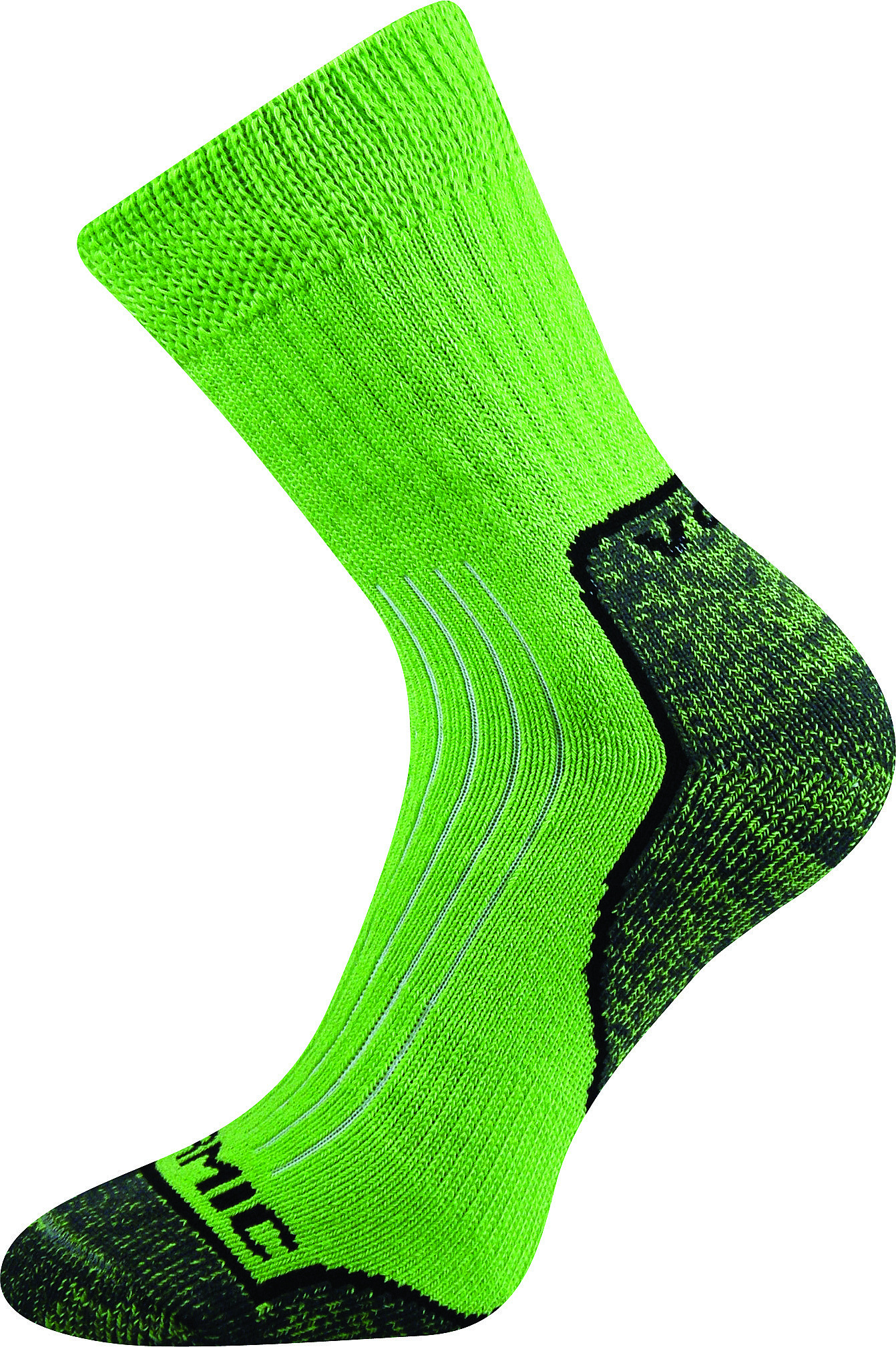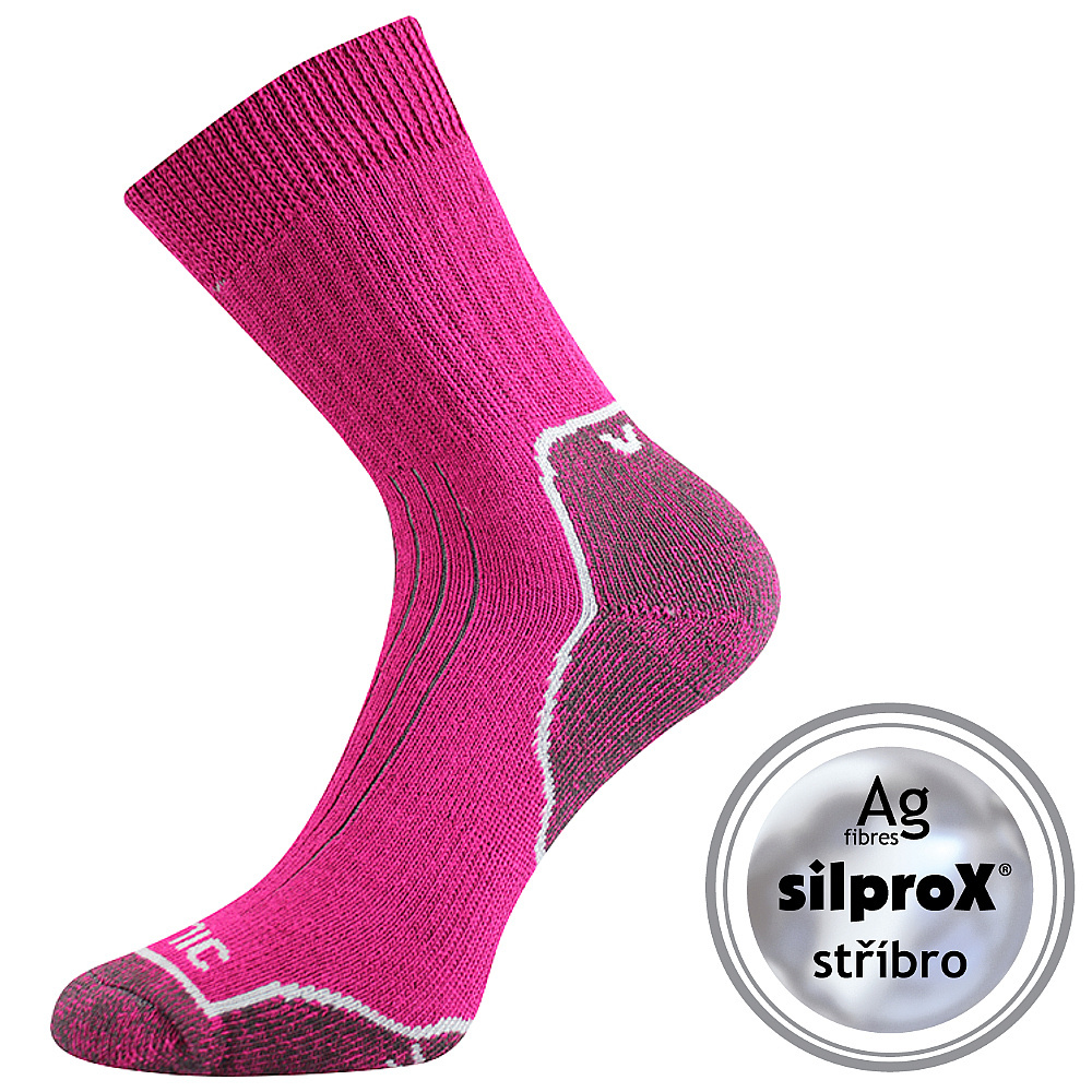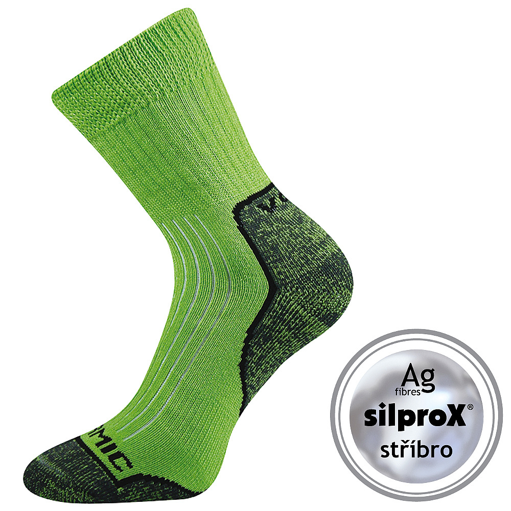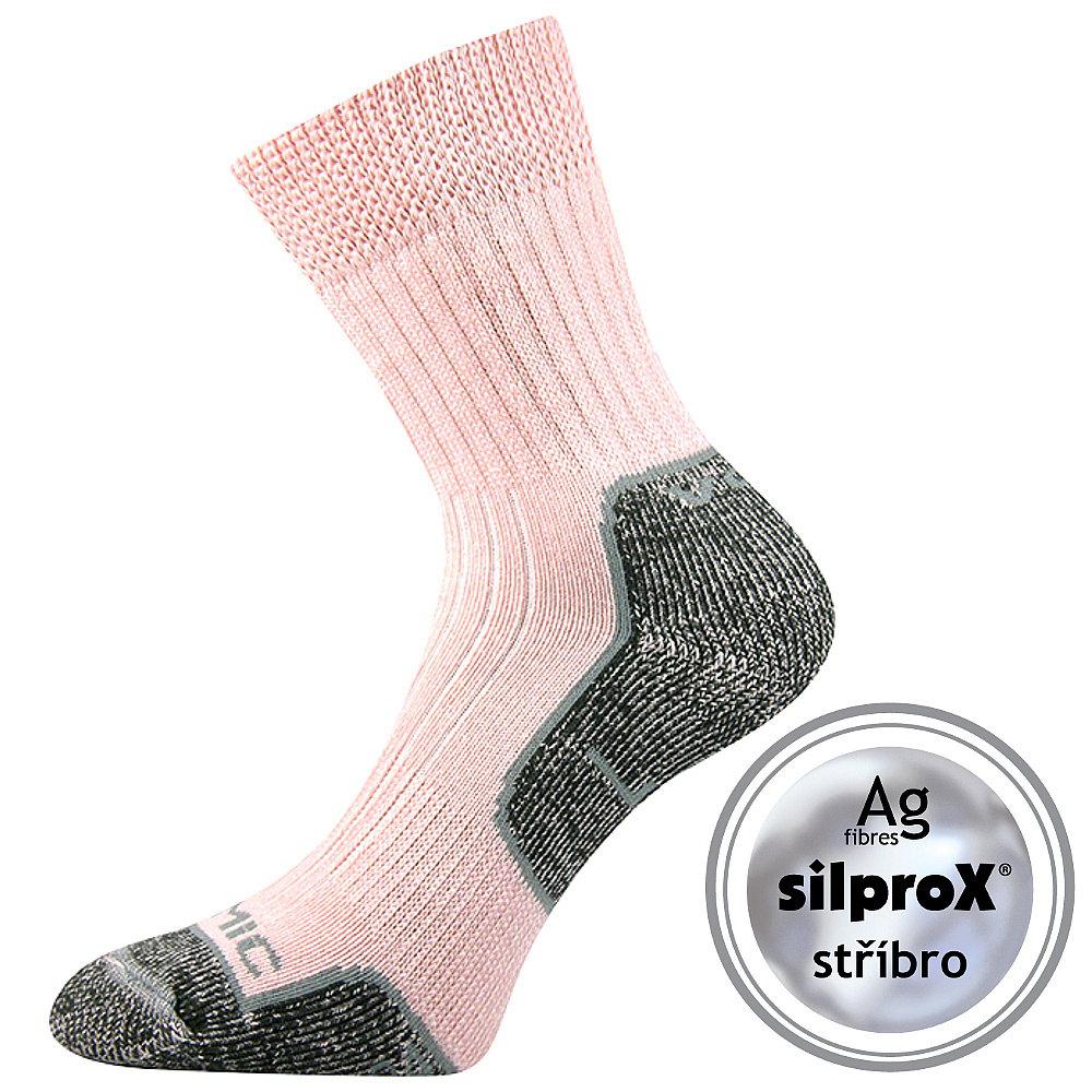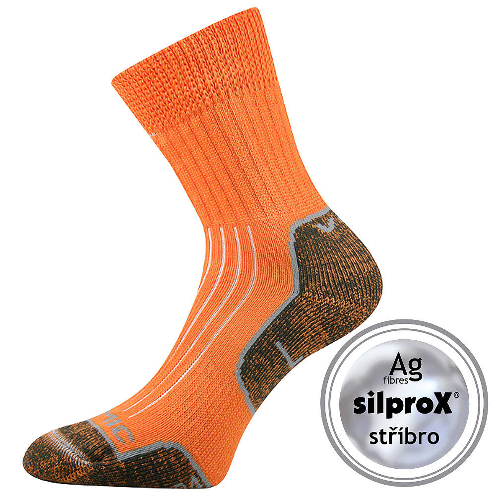 Funkční thermo ponožky VoXX® ZENITH jsou trekingové froté ponožky na treking, horskou turistiku a outdoorové aktivity. Anatomické tvarování na levou a pravou nohu udrží nohy neustále v pohodlí i při náročném a dlouhotrvajícím pohybu. Díky antibakteriální ochraně ionty stříbra v materiálu silprox® je značně omezena tvorba bakterií a plísní. Bakterie jsou stříbrem přirozeně zničeny a nedochází pak k tvorbě zápachu. Chodidlo je vyztužené, lem je jemný a nestahující, konstrukce dobře odvádí pot od pokožky. Froté ponožky pro chladnější období jsou v teplotní třídě C od -20°C do +5°C, navíc dostupné i nadměrných velikostech.