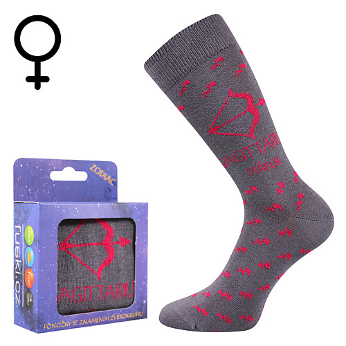 Dámské a pánské ponožky Boma® ZODIAC se znamením zvěrokruhu. Originální ponožky z přírodní bavlny, které jsou příjemné na omak a vysokou schopností pojmout vlhkost jsou tím pravým dárkem pro každou příležitost. Vyšší ponožky mají jemný nestahující lem, jsou pohodlné a dobře se nosí. Veselé ponožky jsou balené v dárkové krabičce.