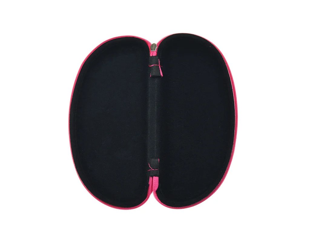Růžové pouzdro se zlatým žíháním je vhodné na dioptrické brýle, brýle na čtení nebo na sluneční brýle. Zapínání pouzdra je na zip.
