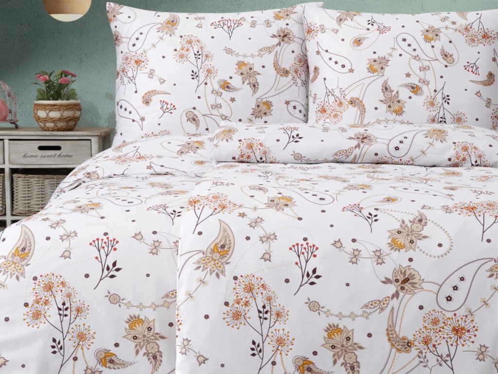 Vneste do své ložnice harmonii a klid s povlečením, které spojuje eleganci a přírodní motivy. Na světlém podkladu se jemně rozprostírají květy, lístky a stylizované ornamenty v teplých odstínech béžové, hnědé a terakotové. Vzor působí vzdušně, lehce a přesto originálně – ideální pro ty, kteří mají rádi jemnou decentnost s dotekem přírody. Neutrální barvy snadno sladíte s moderním i klasickým interiérem a dodají vaší ložnici útulnou atmosféru. Povlečení působí elegantně, ale zároveň pohodově, takže se v něm budete cítit vždy příjemně. Perfektní volba pro ty, kteří chtějí usínat v klidném a hřejivém prostředí.