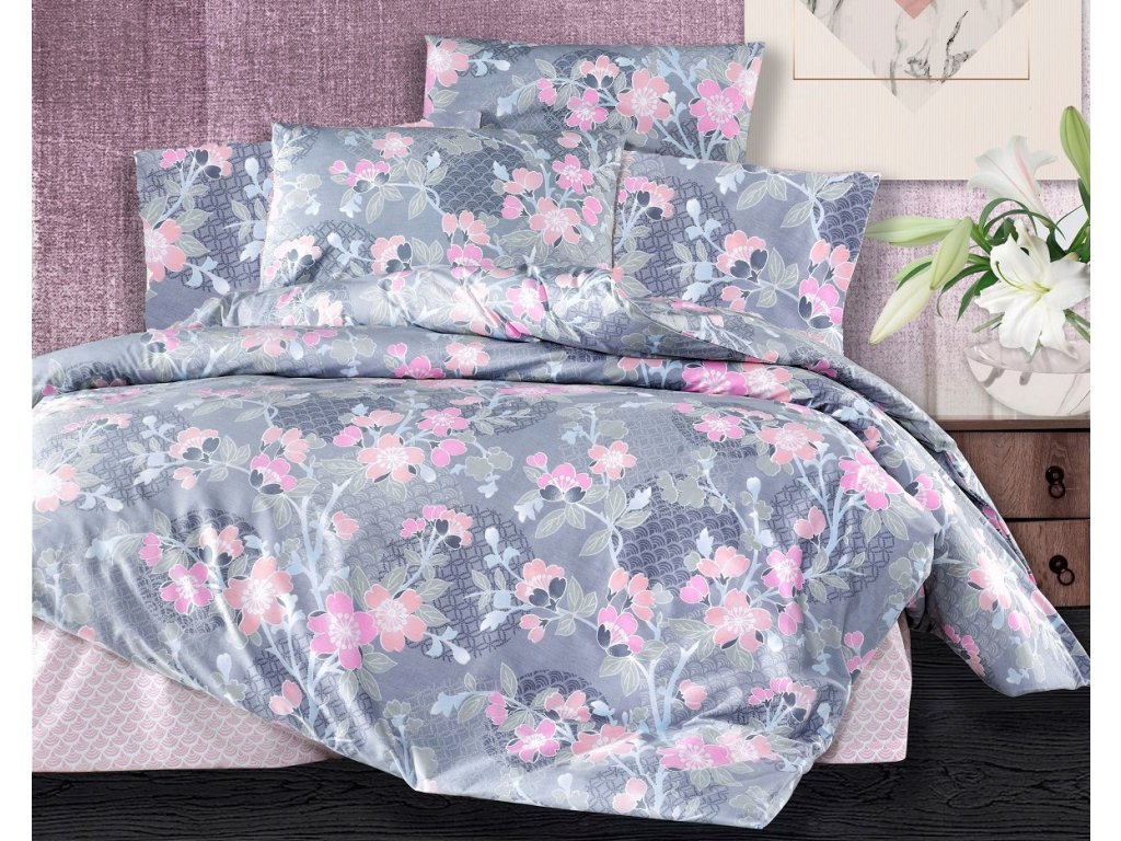 Romantickému vzoru Sarah pink dominuje šedá barva, na které krásně vynikají jemné růžové květy. Vzor na povlaku přikrývky i polštáře je oboustranný. Povlečení lze sladit s prostěradlem barvy šedé nebo růžové.