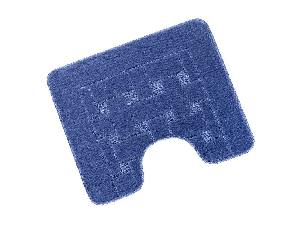 Předložka před WC s výkrojem o rozměru 60x50cm. Možno barevně dokompletovat s předložkou před vanu o rozměru 60x100cm. Rub předložek je tvořen povrchem z latexového nátěru, předložky nekloužou po koupelnové podlaze a dají se snadno udržovat vypráním na 40°C.