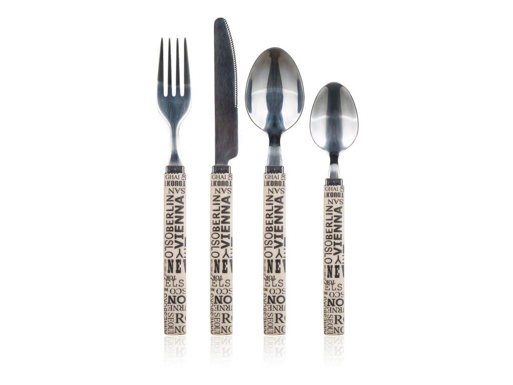 Sada příborů CAPITAL 24 dílů obsahuje: 6x polévkovou lžíci, 6x vidličku, 6x jídelní nůž a 6x čajovou lžičku. Povrchová úprava lesk, nerez 18/0 o síle 1,8 mm, plastové držadlo s dekorem. Příbory nejsou vhodné do myčky nádobí.