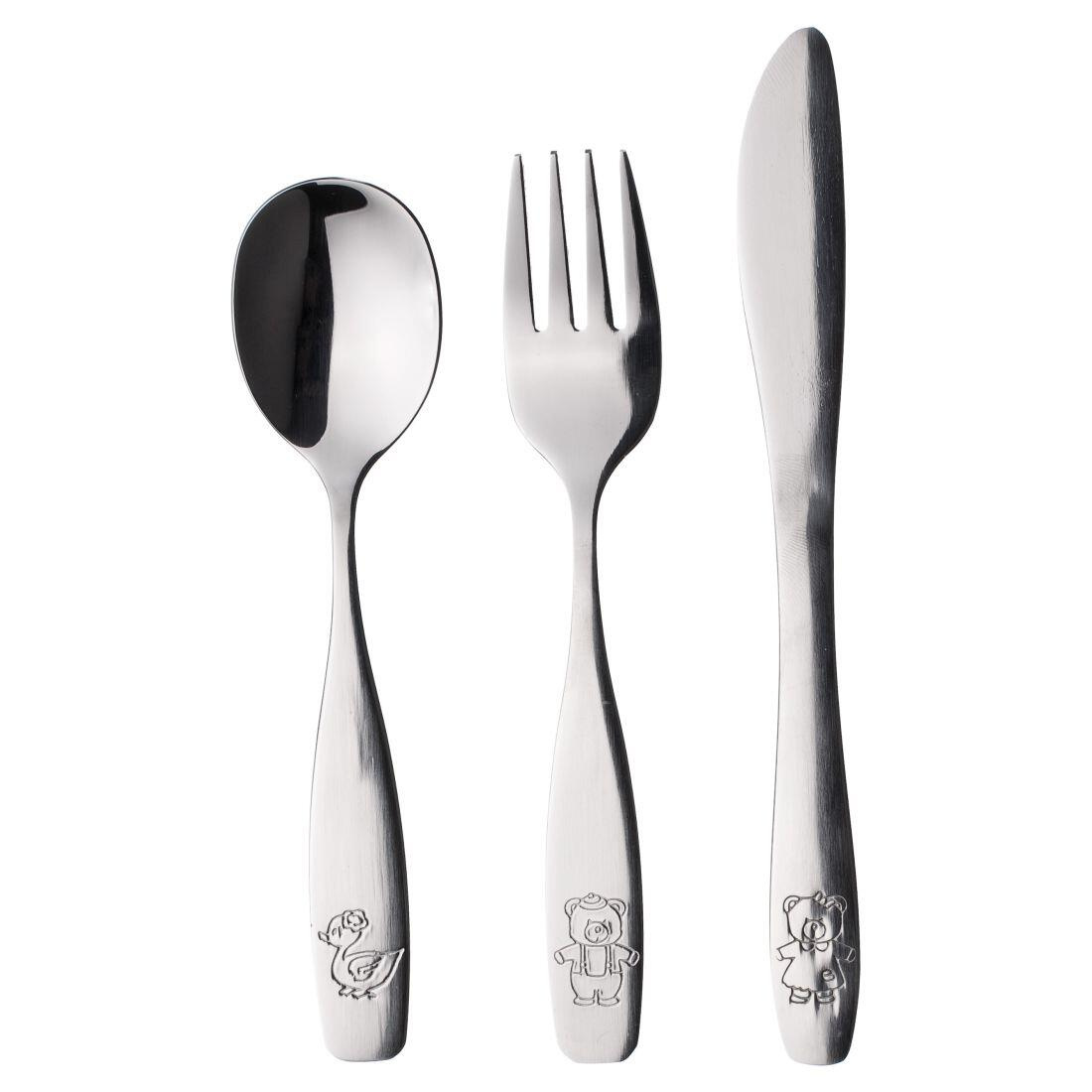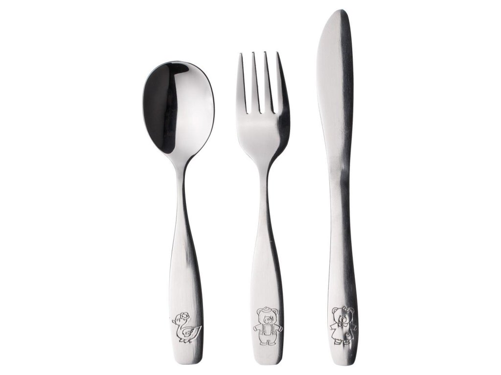 Dětský příbor ANIMAL z leštěné oceli, s vyraženými motivy zvířátek na rukojeti, sada 3díl.