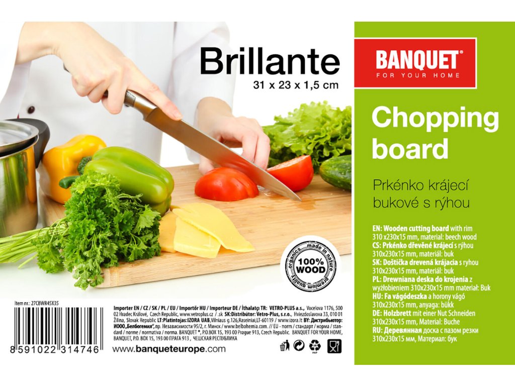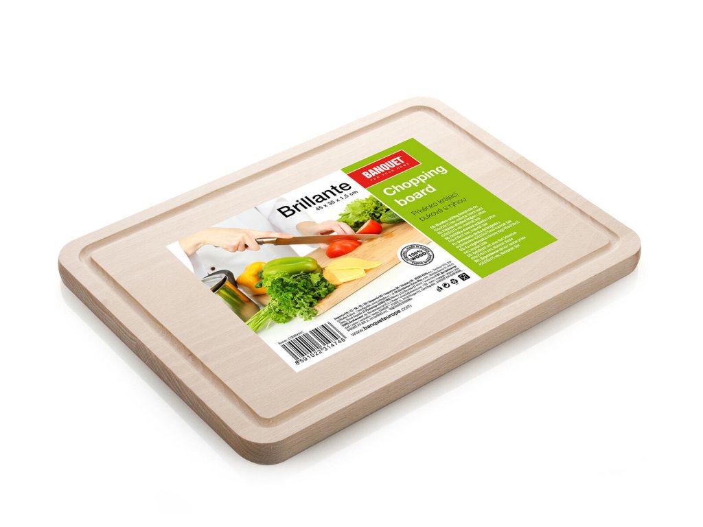 Dřevěné krájecí prkénko BANQUET Brillante s drážkou po obvodu prkénka, kvalitní zpracování.