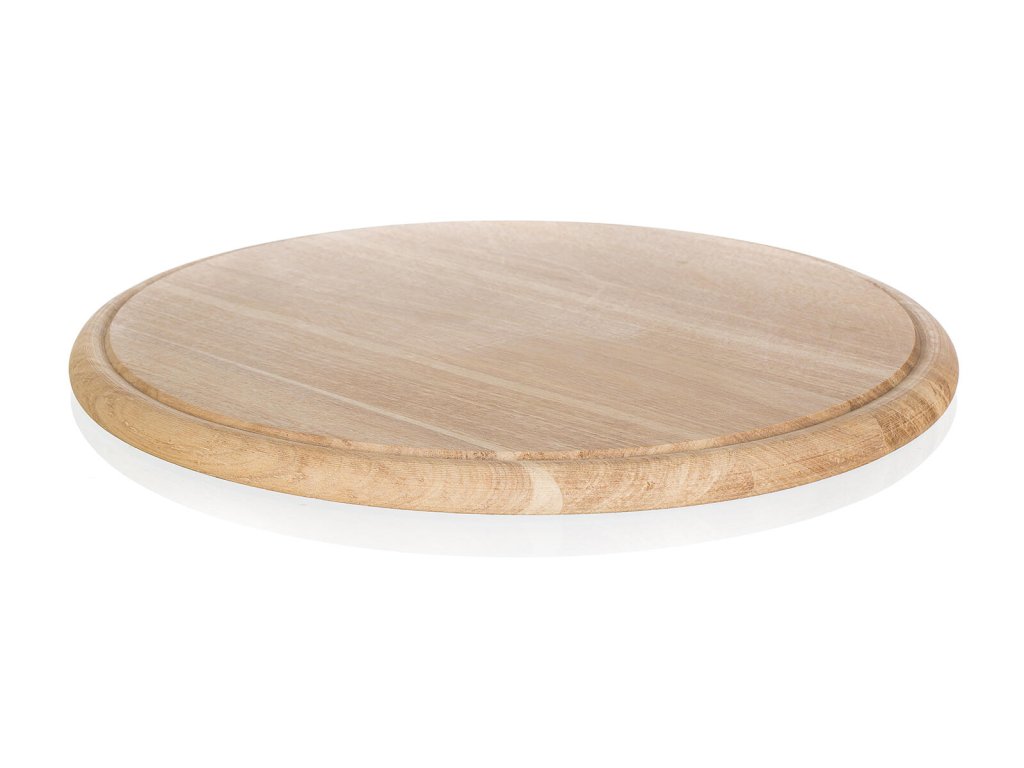 Prkénko má kulatý tvar s drážkou po okraji, výška prkénka je 1,4 cm.