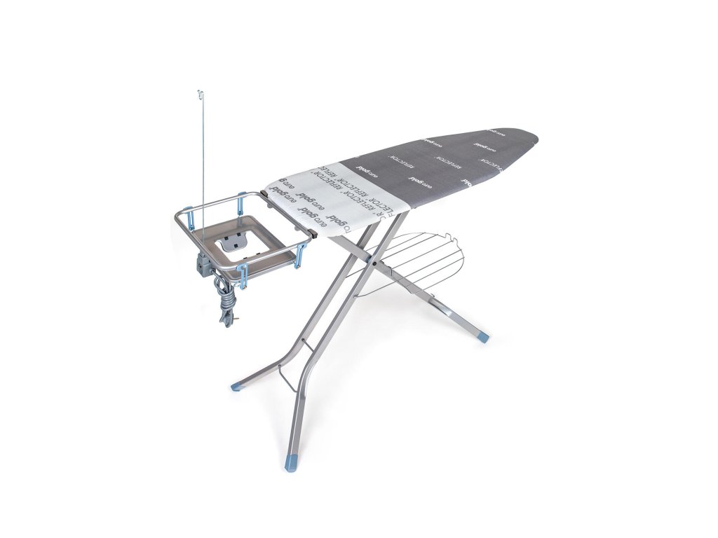 Žehlící prkno je vybaveno integrovanou elektrickou zásuvkou, odkládacím prostorem pro parní žehličku a plochou pro vyžehlené prádlo.