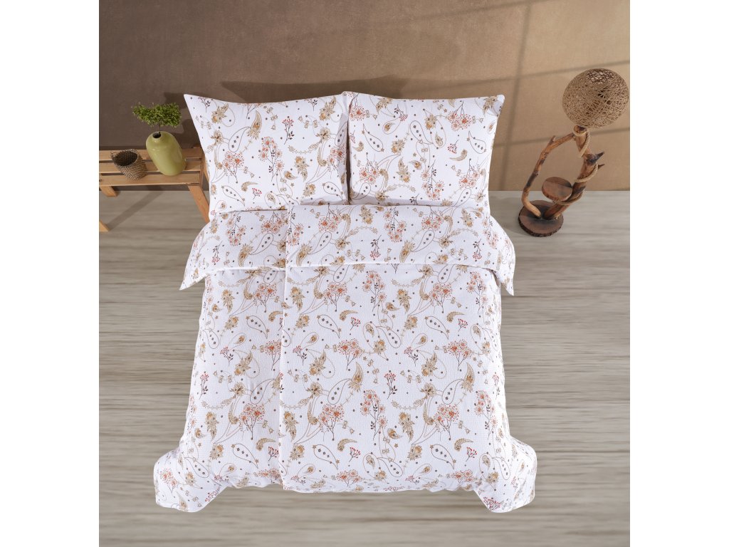 Vneste do své ložnice harmonii a klid s povlečením, které spojuje eleganci a přírodní motivy. Na světlém podkladu se jemně rozprostírají květy, lístky a stylizované ornamenty v teplých odstínech béžové, hnědé a terakotové. Vzor působí vzdušně, lehce a přesto originálně – ideální pro ty, kteří mají rádi jemnou decentnost s dotekem přírody. Neutrální barvy snadno sladíte s moderním i klasickým interiérem a dodají vaší ložnici útulnou atmosféru. Povlečení působí elegantně, ale zároveň pohodově, takže se v něm budete cítit vždy příjemně. Perfektní volba pro ty, kteří chtějí usínat v klidném a hřejivém prostředí.