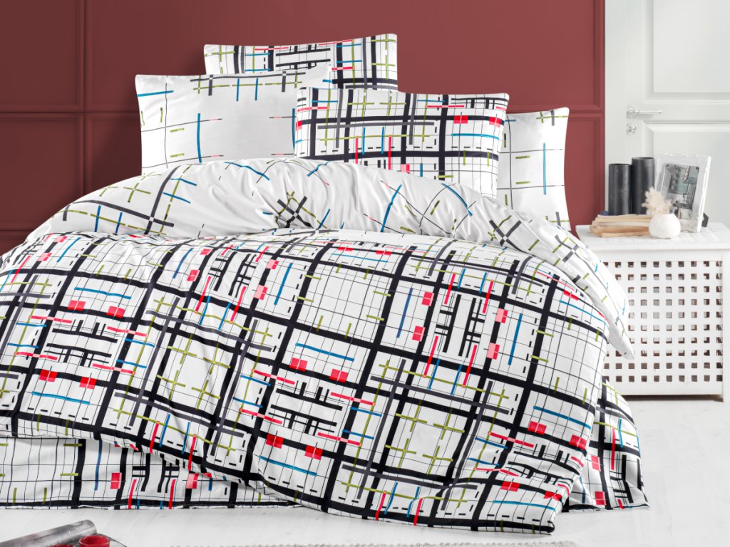 Luxusní saténové povlečení Geometry zdobí geometrický motiv zajímavé a decentní barevné kombinace. Moderní design, který zpestří vaší ložnici. Doladíte šedým, smetanovým, červeným, černým nebo bílým prostěradlem.