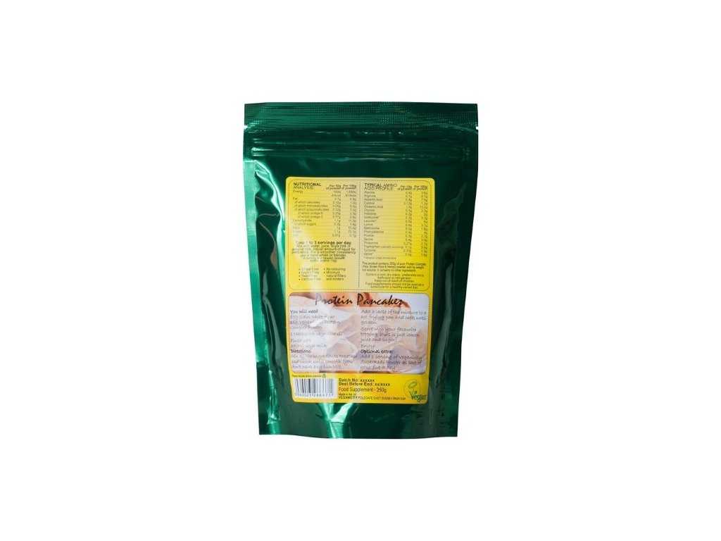 Tento výrobek obsahuje 250 g. čistého proteinového komplexu (hrachový, hnědý rýžový a konopný). Neobsahuje žádné další složky.