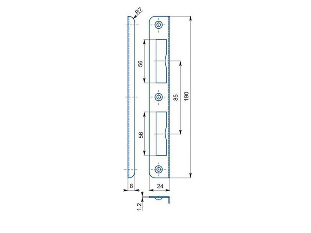 Univerzální úhlový protiplech K192 pro zadlabací zámky, který se využívá zejména v obložkových zárubních.