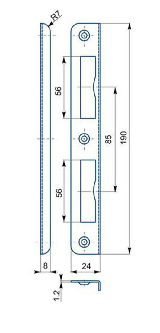 Univerzální úhlový protiplech K192 pro zadlabací zámky, který se využívá zejména v obložkových zárubních.